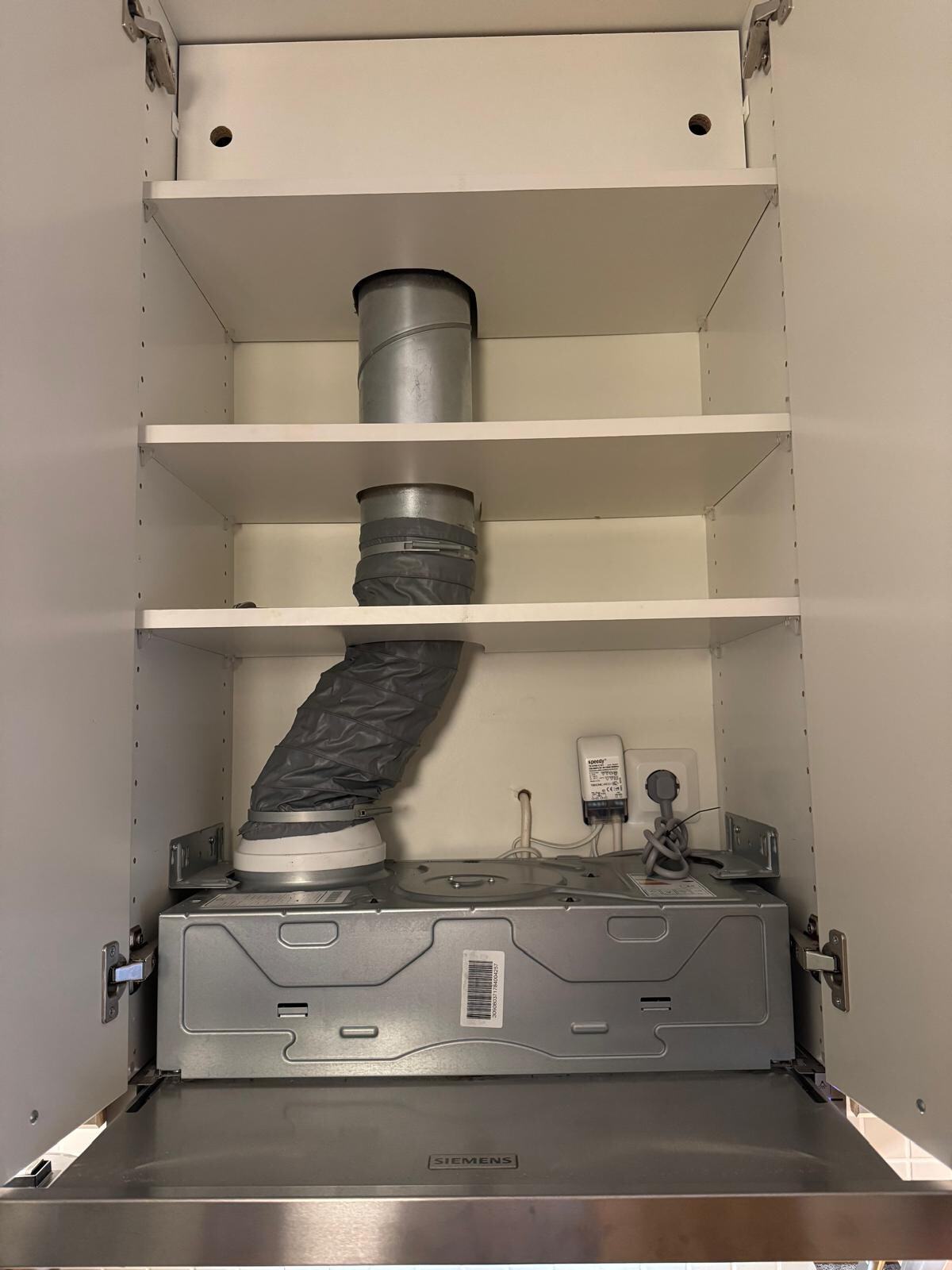 Bor i ett lägenhetshus från 2004 där vi har central frånluftsventilation. Förrförra ägarna har bytt spisfläkt 2014 och vi hade nyligen OVK där vi fick underkänt: "Ni har felaktig installerad spisfläkt. Ni ska ha spiskåpa med grundflödesspjäll."