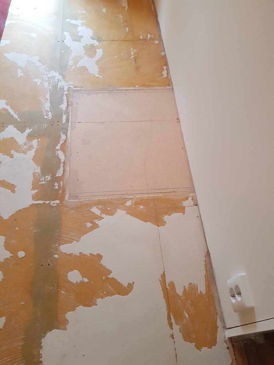 Golvet är ett spånskivegolv som är uppreglat på betongvalv. Vi har tagit bort alla löst sittande rester av den gamla mattan men det finns en hel del kvar. Mindre springor/skarvar finns. Jag har skruvat golvet men några skarvar rör sig lite när man går på dom. Har jag köpt ett olämpligt golv till detta projekt? Surt att lägga in ett svindyrt golv som blir skit efter ett tag