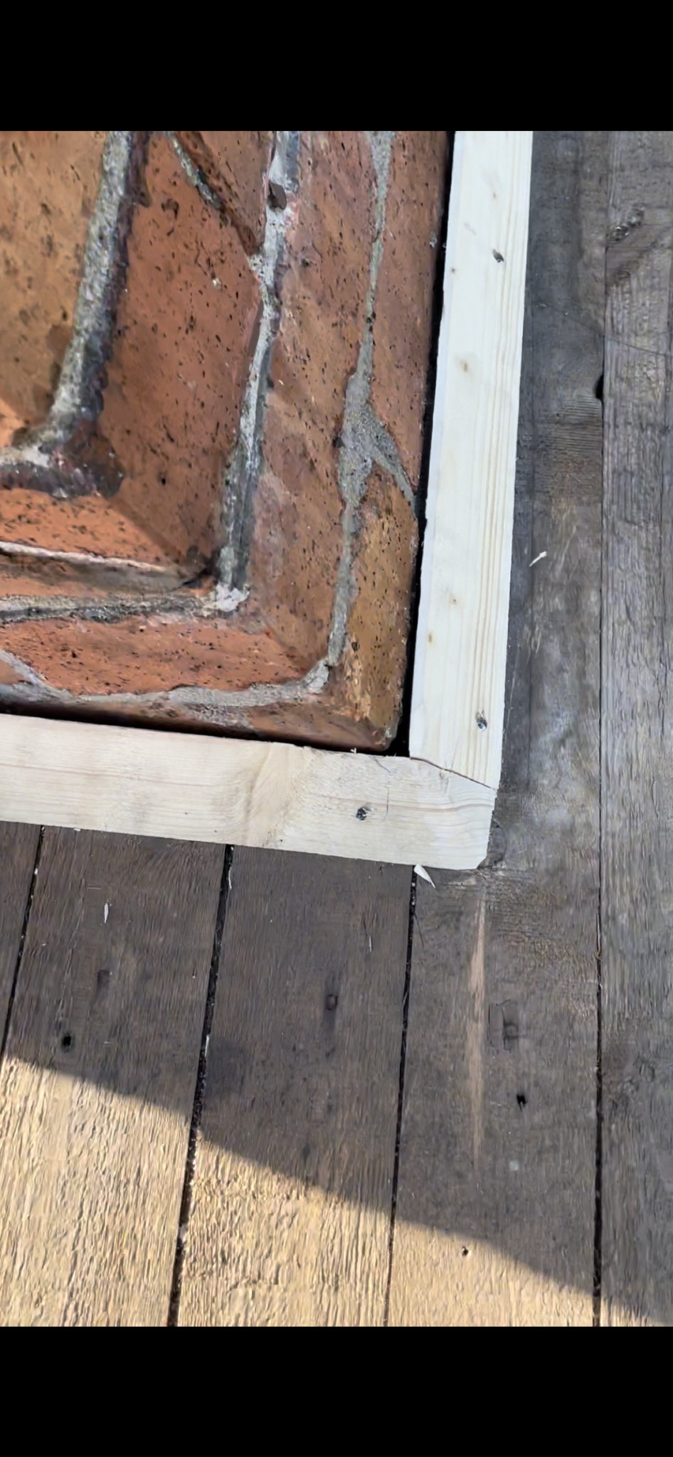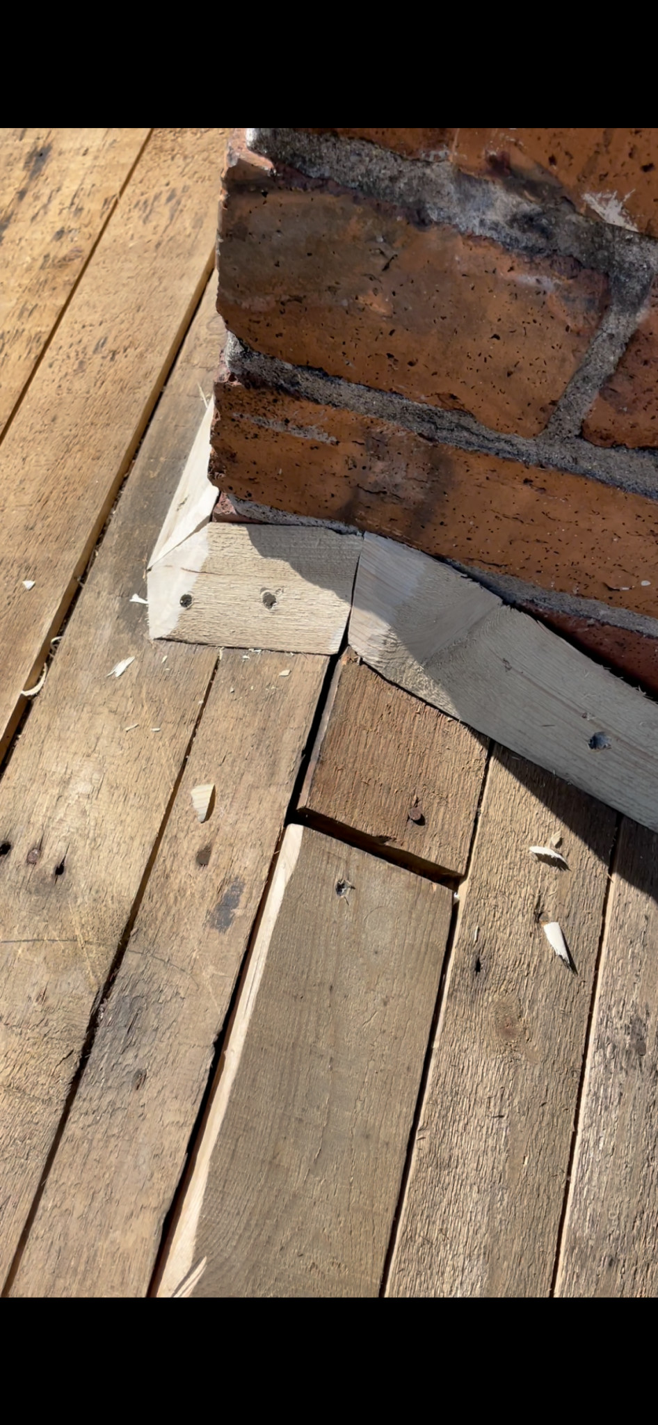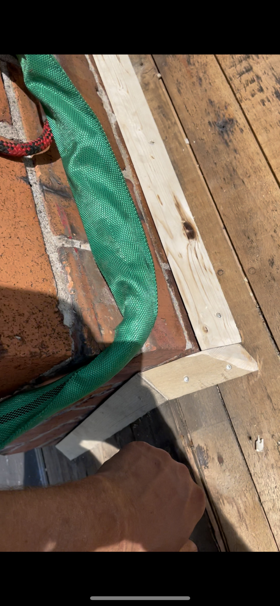 - Först så fäste jag en trekantslist runt om hela skorstenen. Skorstenen går genom nocken (inte jämnt fördelat).