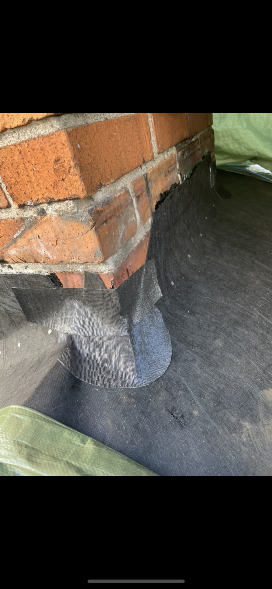 Inget fel i det du gjort, men kanske lite överkurs. Du måste i alla fall ha en plåtbeteckning runt skorstenen och en fog ska skraps ur lite ovanför pappanslutningen. Plåten knäcks så den går in i fogen och då kommer ev. vatten att rinna ut på plåten. En del sätter bara plåten direkt mot och vid riktigt busväder så rinner vatten in bakom plåten/omfattningen.
