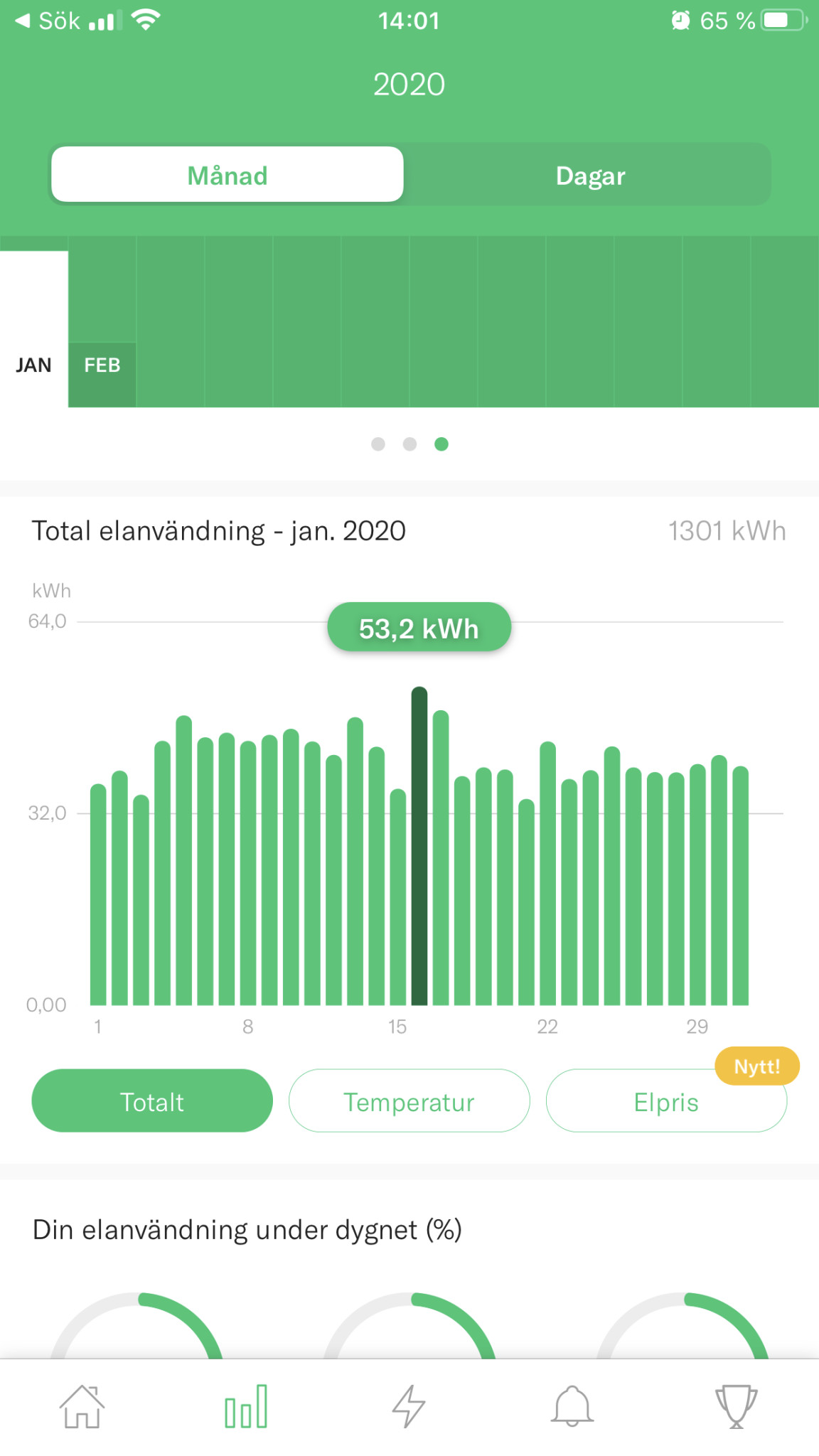 Jag kör även Greenely. Helt kostnadsfritt och du behöver inte binda dig till ett elabonnemang. Hos mig fick mitt lokala elbolag byta mätare helt kostnadsfritt. Så Greenely fixar allt. Sedan får man dagen efter per timme förbrukning. Sedan på kvällen får jag iaf en jämförelse vad liknande hushåll har. Även vad 20% bästa hushåll hade i genomsnitt. Skulle rekommendera Greenely till alla. Jag skrev ner allt vad jag förbrukade varje timme. Det som var största elboven kunde jag tyvärr inte mäta. Elpannan.