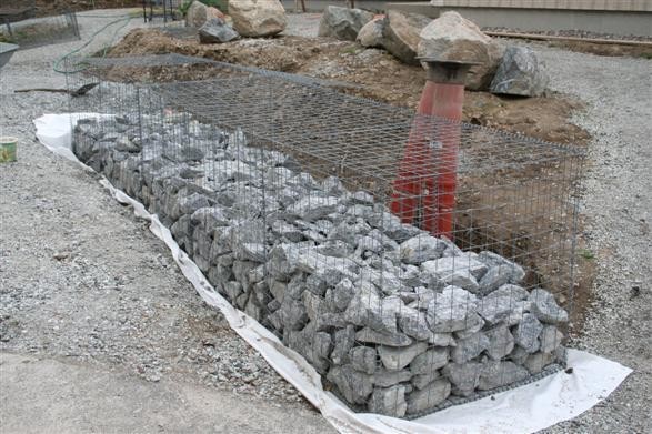 Vi håller också på att sätta upp gabioner, har precis börjat fylla dom (ligger 26 ton skärv på uppfarten.