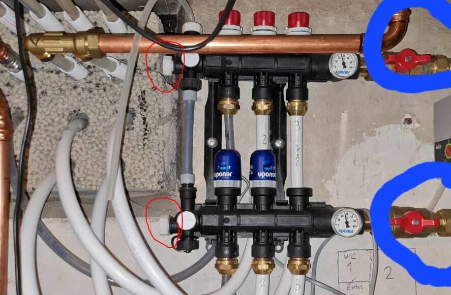 Dom inringade med blått på sista fotot är avstängare, vredet ska stå tvären, går bara att vrida åt ett håll, sen luftskruven. tryckfritt Stäng av pumpen före.