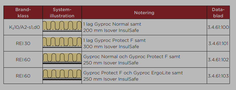 Uppfyller enkelgips och 145mm stenullsskiva EI30