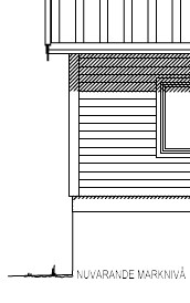 I ena änden av huset sluttar bef mark något. På en hörnet av huset är bef marknivå ca 1 m under färdigt golv.