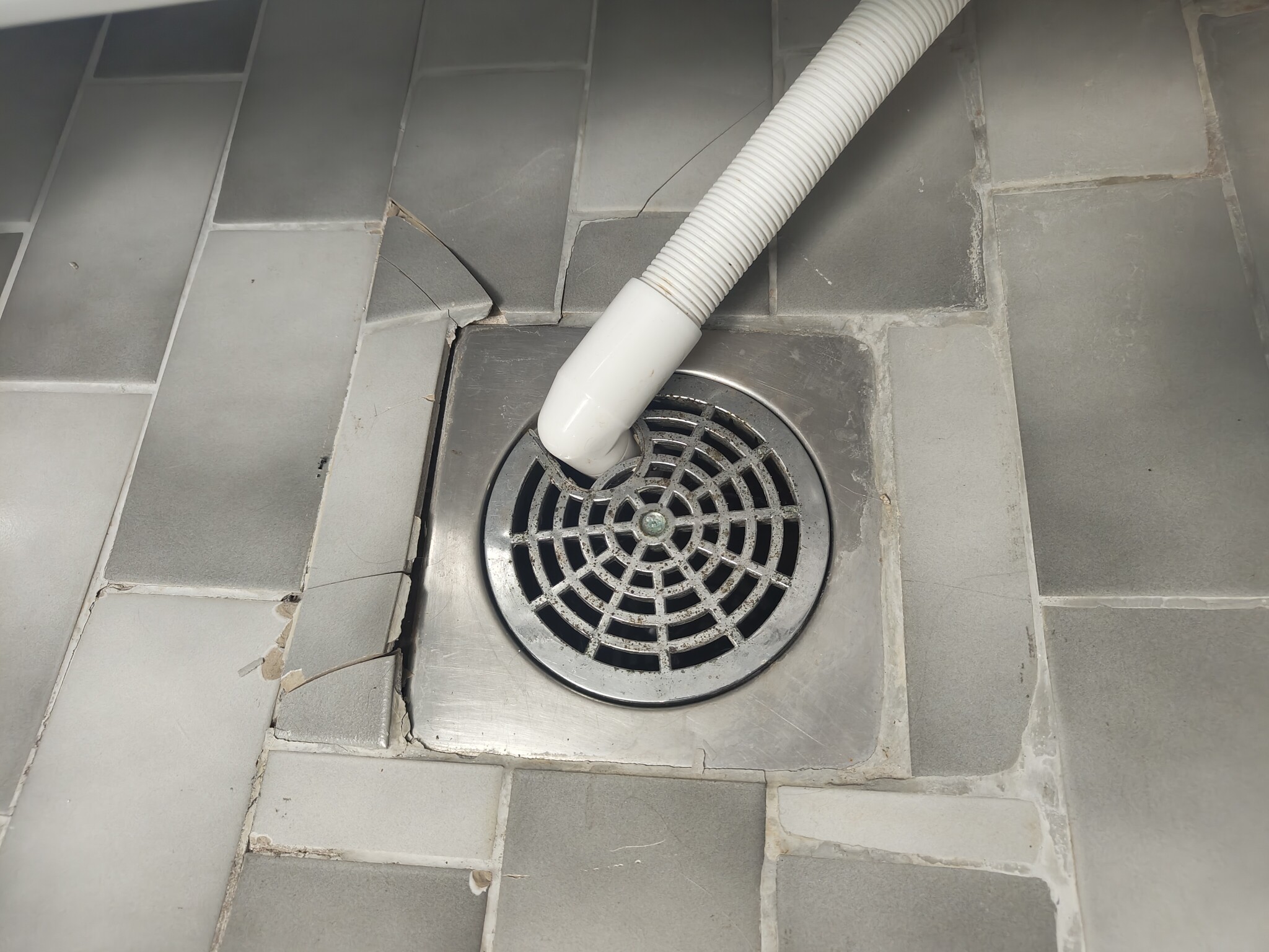Vårt hus, byggt 1976 och i vår ägo sedan 2023, har en tvättstuga på markplan där nu kaklet runt golvbrunnen höjts. Höjningen har skett successivt över ett tag, och jag trodde länge att det inte alls var en höjning utan bara kalket som var amatörmässigt fogat.
