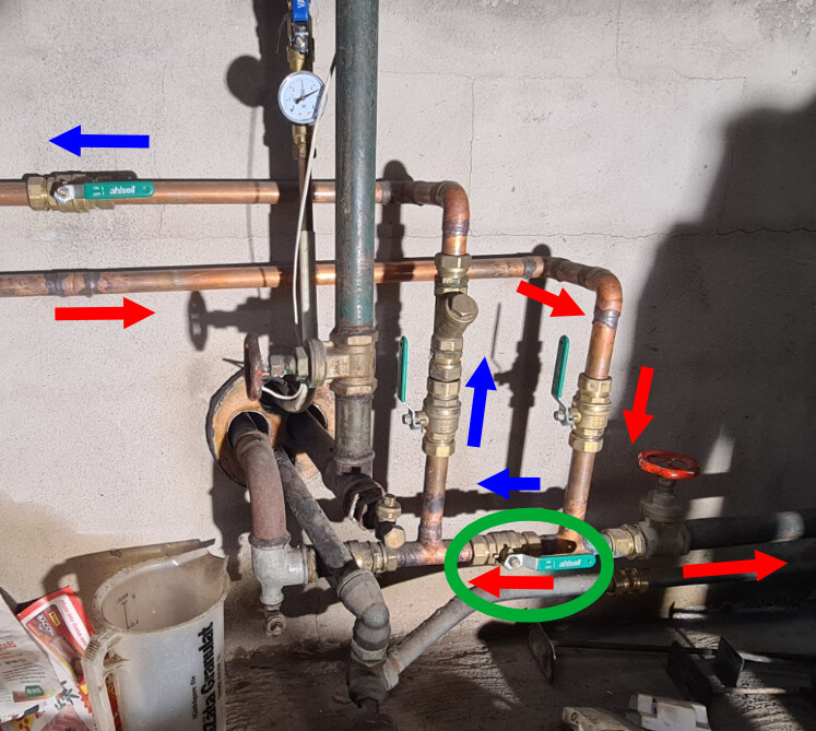 Trodde först - har cirkulationspumpen börjat snurra åt fel håll? - men det finns en pil bak på pumpen som visar en moturs rotation - pumpen snurrar åt de hållet.