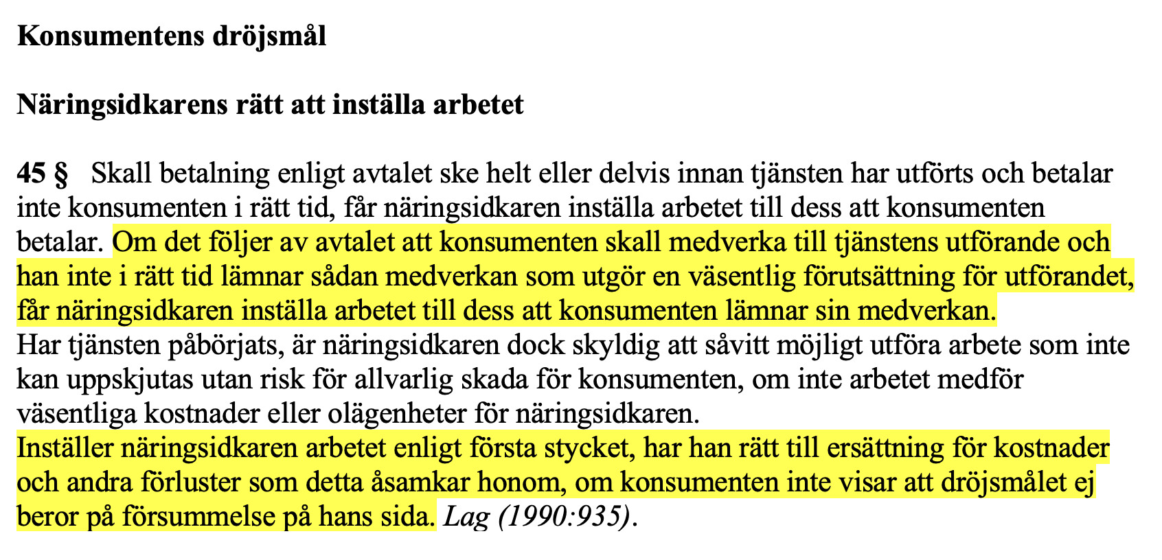 I grund och botten är ju företaget förbjudet enligt lag att fortsätta med arbetet genom 4 § i konsumenttjänstlagen: