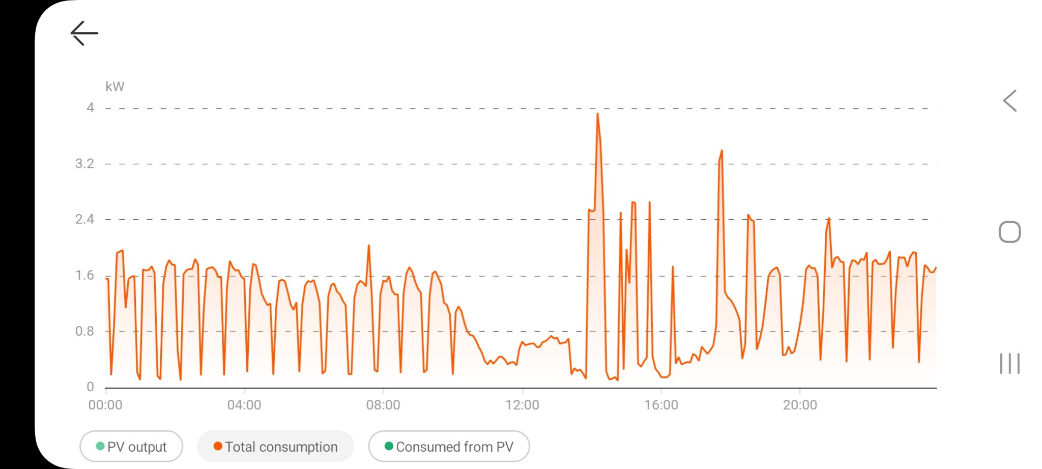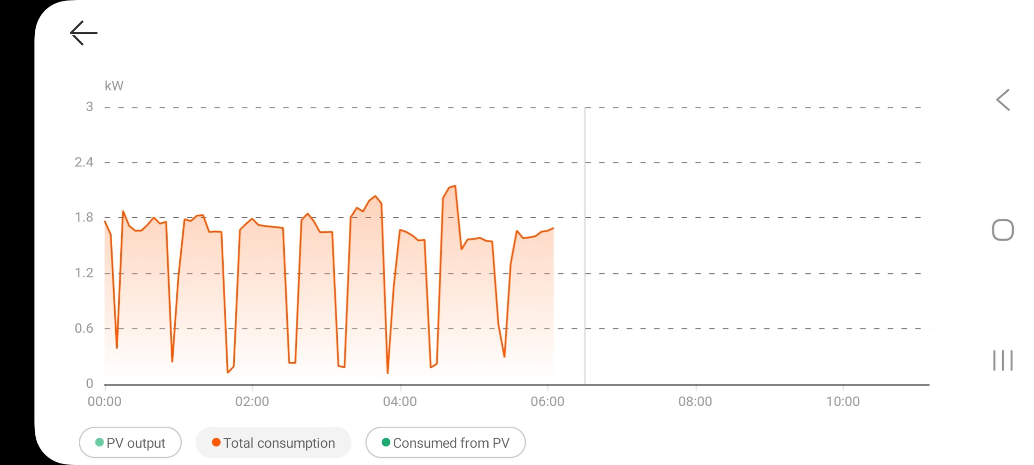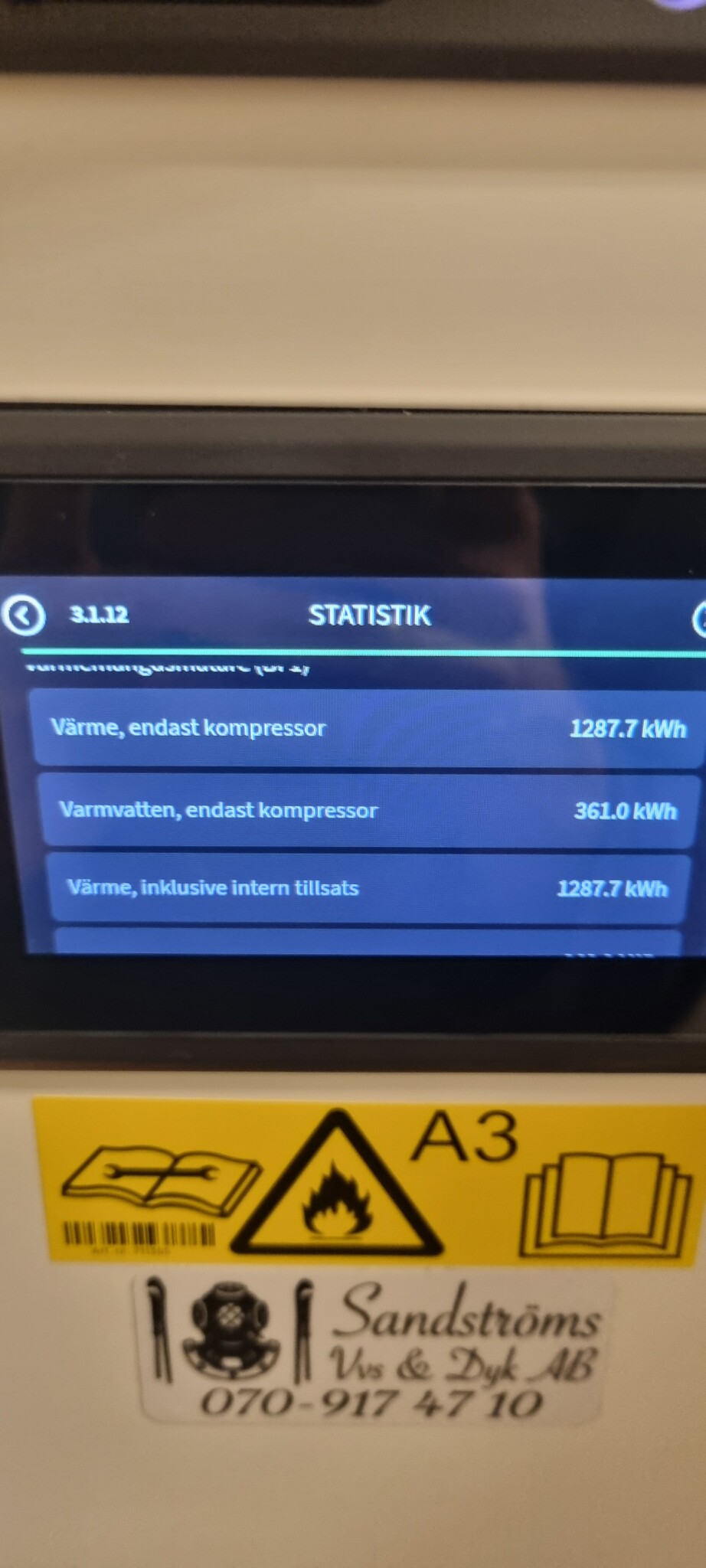 Nedan finns bilder bifogade, och de två första bilderna är ett diagram över den totala elförbrukningen för hela huset. Jag använder Myuplink basic-versionen, så jag har ingen mätarställning för enbart värmepumpen. På natten använder resten av huset 200 watt per timme, och resten går på värmepumpen. Den första bilden är från igår kväll till idag, och den andra bilden är från de föregående dagarna då det inte fanns något stort värmebehov och den visar hur ojämnt kompressorn arbetar.När vi använde den gamla värmepumpen hade vi ingen sensor för att mäta innertemperaturen, men jag tror att den låg runt 22 grader. När det blev kallt som i natt var radiatorerna konstant varma, ibland mer, ibland mindre beroende på hur mycket som behövdes, men aldrig kalla och med sådana svängningar i rumstemperaturen som med den nya värmepumpen.Jag ber om ursäkt för det långa inlägget och den dåliga svenskan.