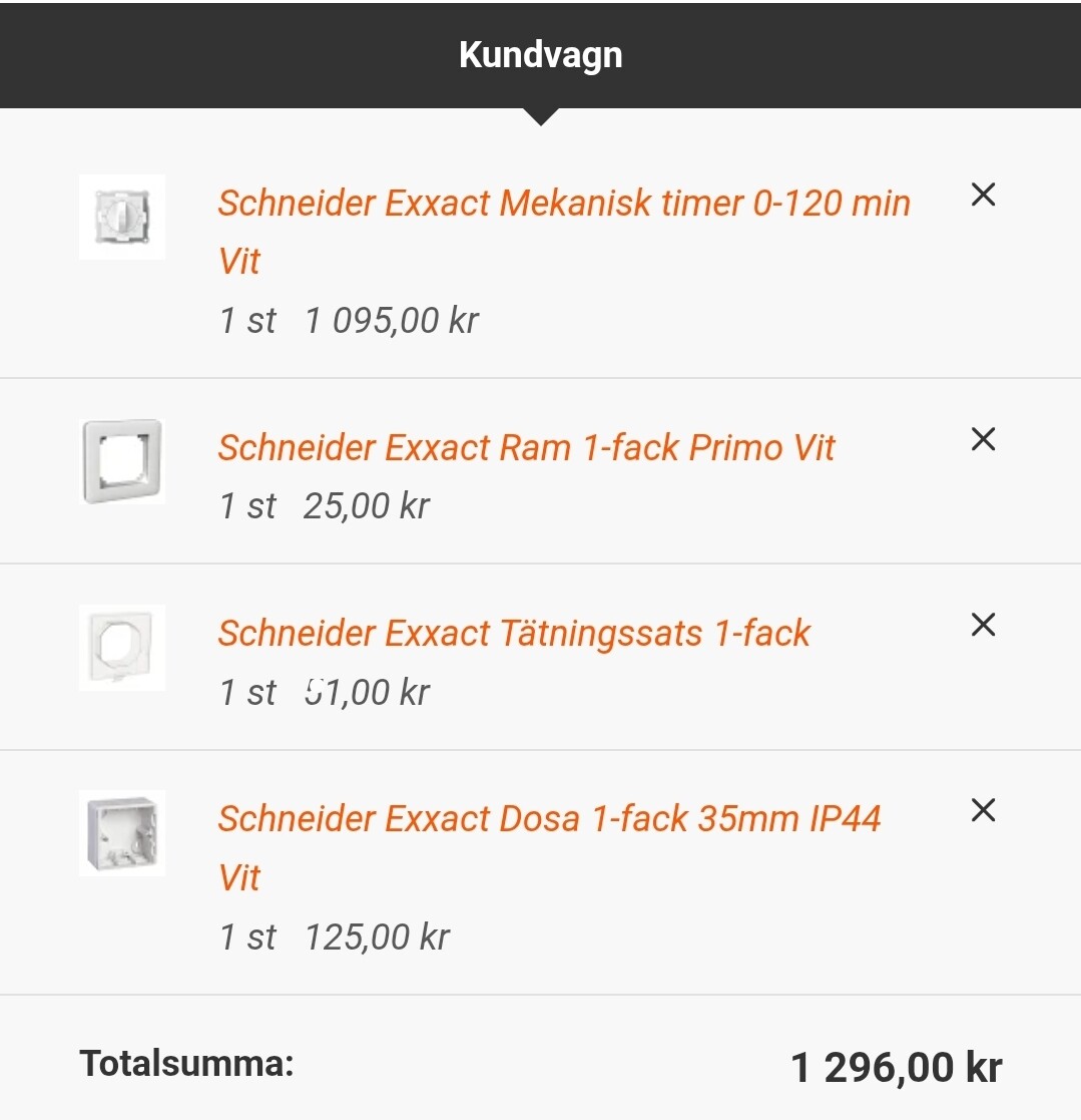 Jag tänkte installera en timer till batteriladdarstationen, och har plockat ihop följande lista. Ser det ut att fungera? Jag är lite osäker på om jag behöver tätningssatsen eller inte.