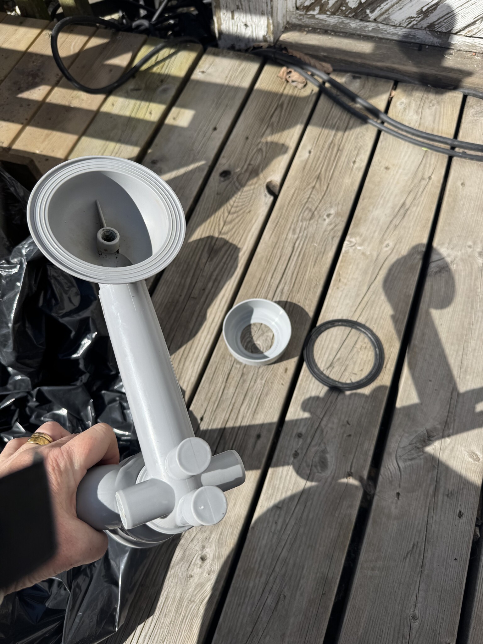 Men annars skall plaströert + kopp sitta under, sen ovanpå en platt packning och metallkoppen. Man skruvar sen ihop det med centrumskruven (som jag inte såg på din bild, men antar att du har) och man brukar få med ett litet plastvertyg för att dra ihop det lagom hårt sen.