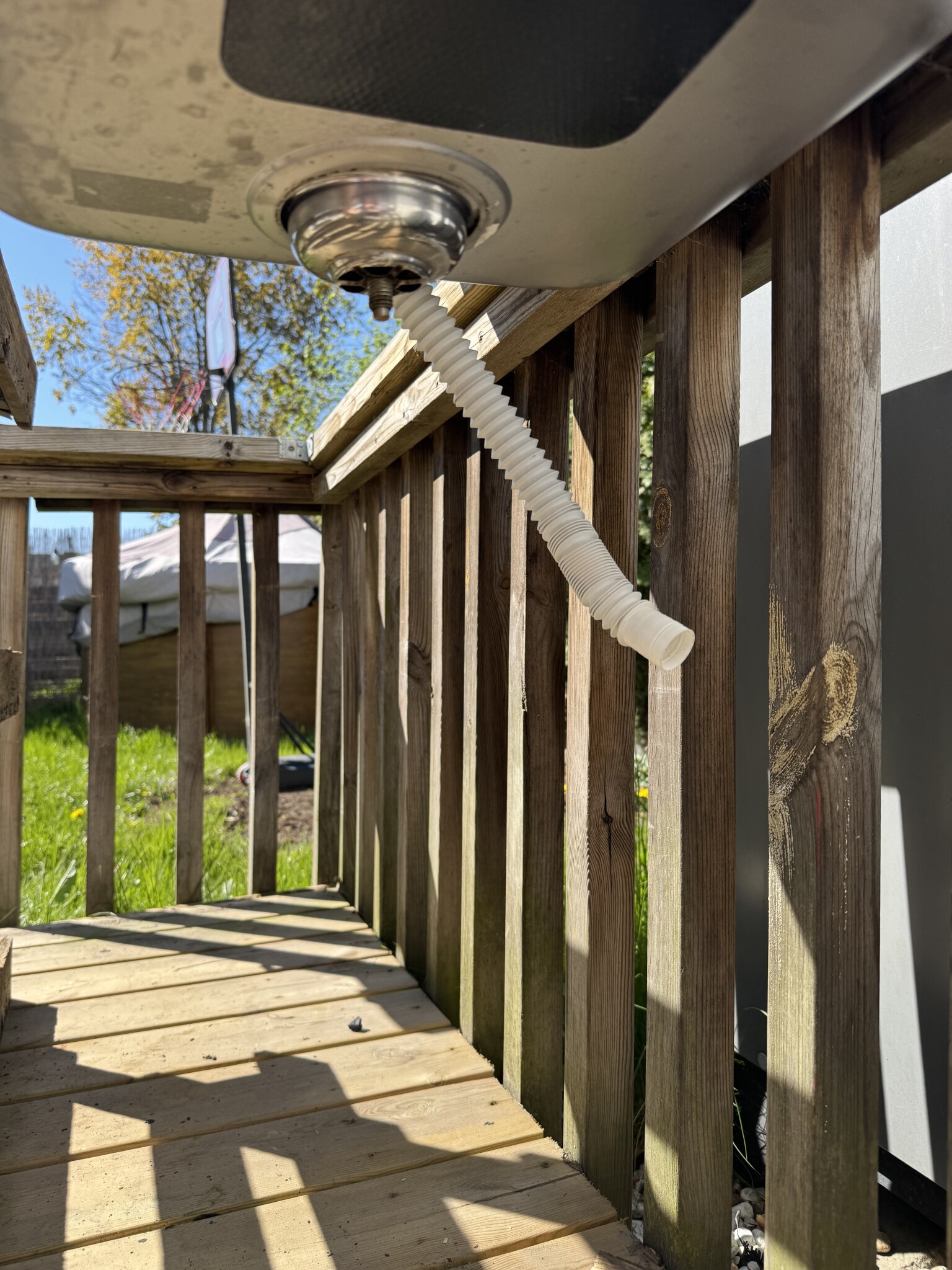 Hej! Bygger ett enkelt utekök med enbart kallt vatten och redan fått svar på koppling med blandaren men hur ska detta sitta under??