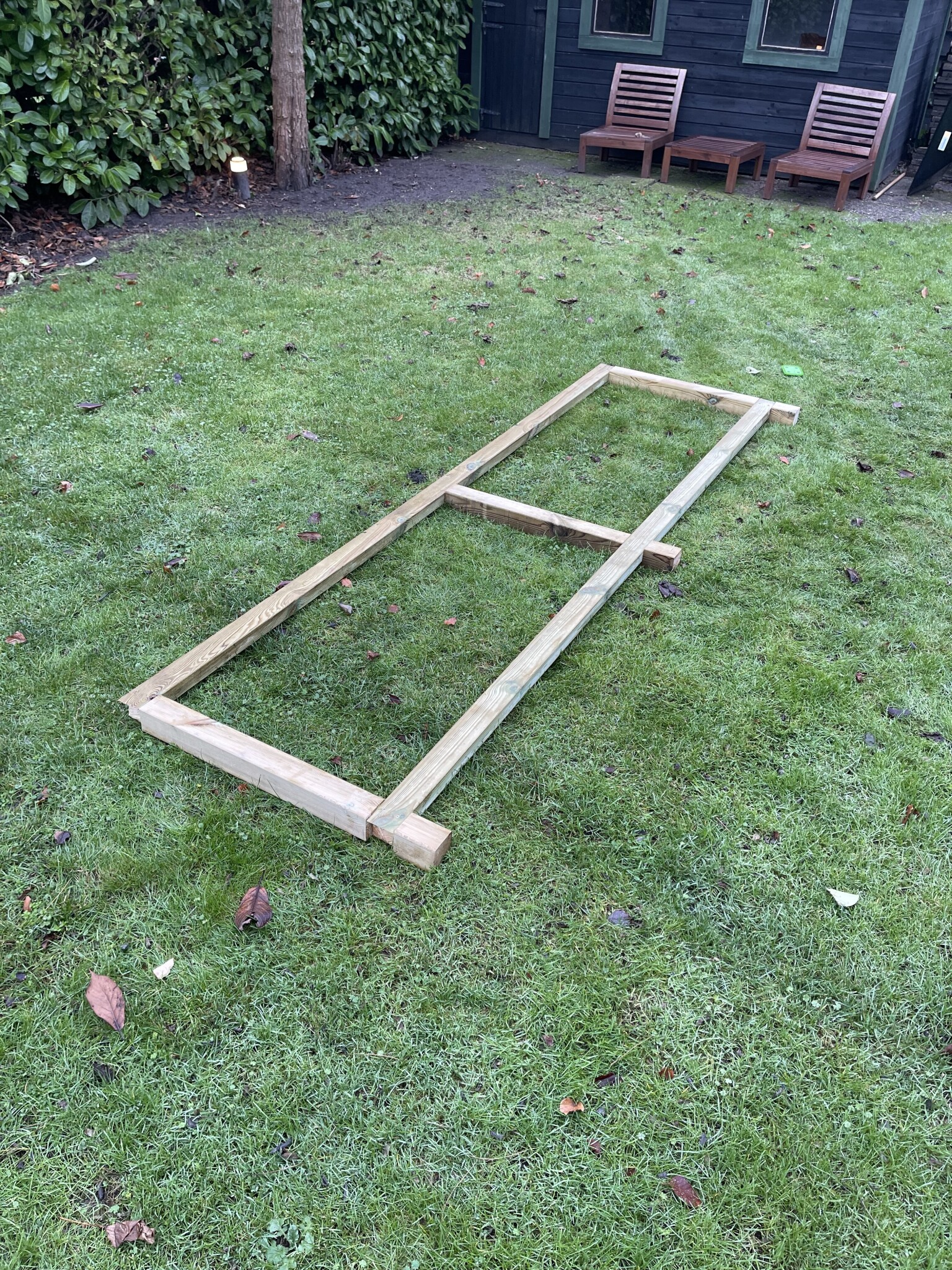 Sen byggde jag de två ”sidorna” såhär. Längden valde jag efter den själva rostfria bänken jag hade hittat på Blocket. Reglarna var 70x45.