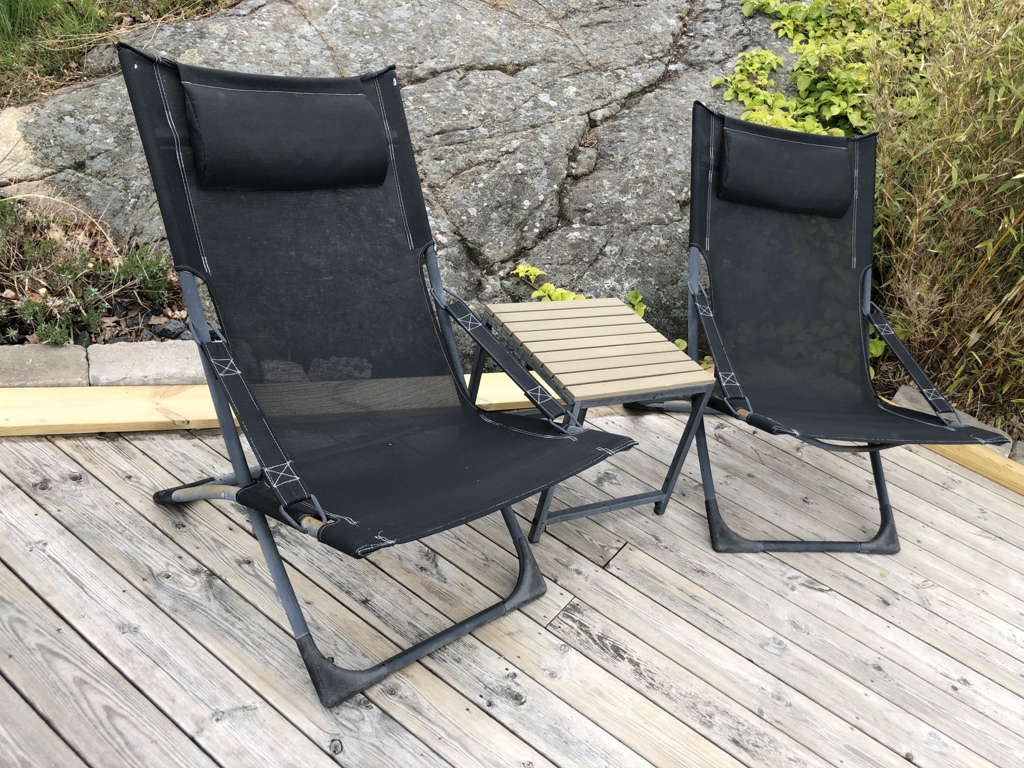 rampante #2 Medlem · Blekinge · 1 310 inlägg 17 maj 2020 15:01 rampante Medlem Blekinge 1 310 inlägg 17 maj 2020 15:01 #2 Kom med bud. Det är alltså två st strandstolar/liggstolar, två fotöljer, hopvikbara. Två små matchande bord och en hängande fotölj/gunga med dyna.