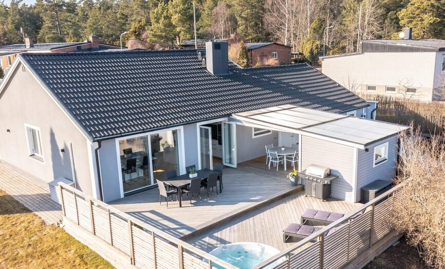Vi älskar vårt uterum, som trots stor öppning förlänger säsongen riktigt mycket, samt ger grym förvaring på vintern.