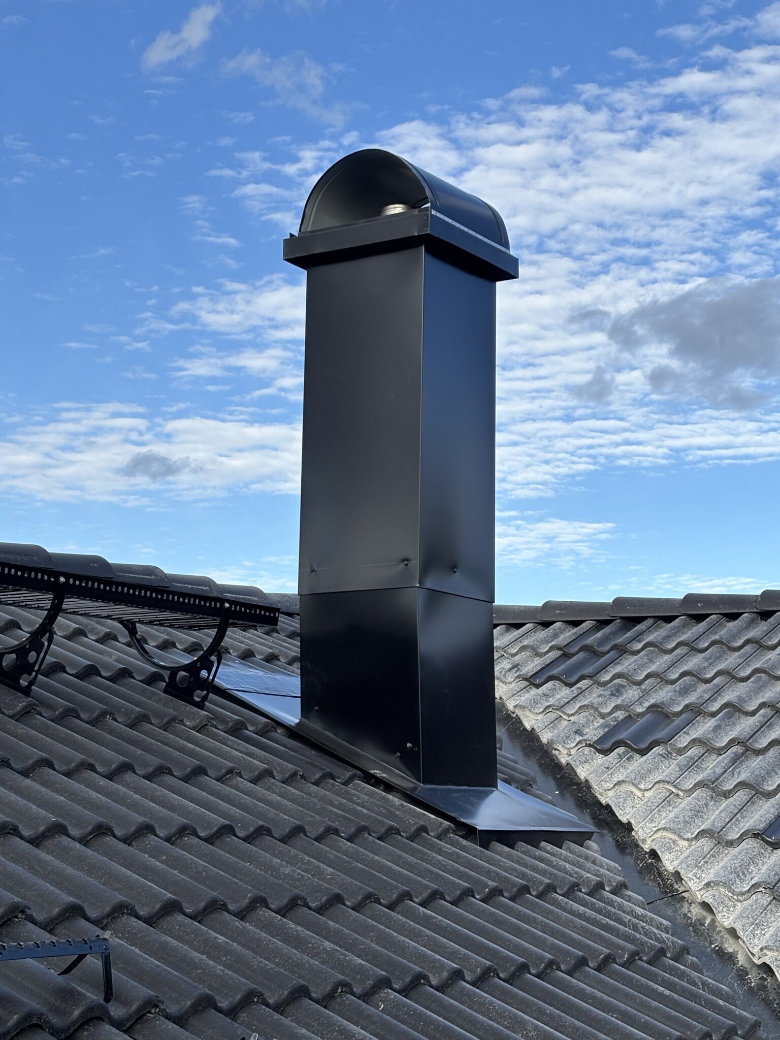 Är mitt uppe i ett takbyte och skulle vilja ha era synpunkter på denna skorsten. Kanske finns det någon plåtslagarna här?