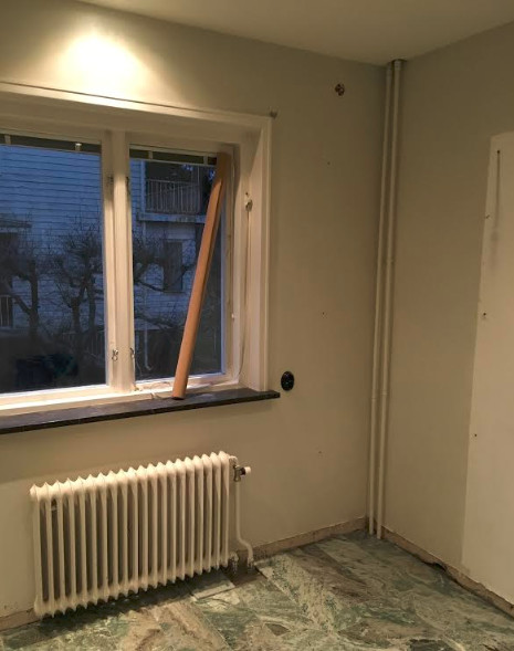 Jag har bifogat några bilder, elementet i vardagsrummet är markerat med blått och rören mellan kök / vardagsrum som jag tror att de går är markerat med rött.