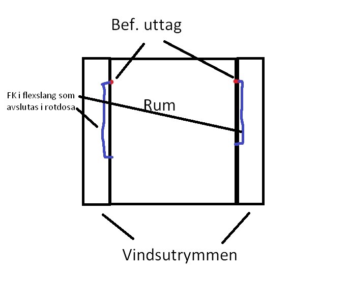 Det gäller utökning av bef. uttag som redan är gjordade. Anledningen till att jag funderade på FK och slang var att jag då kan trycka in slangen i den bef. dosan. Lägger jag kabel blir det att blanda kabel och fk i den första dosan och det känns mer rätt att använda samma lösning som det är idag.