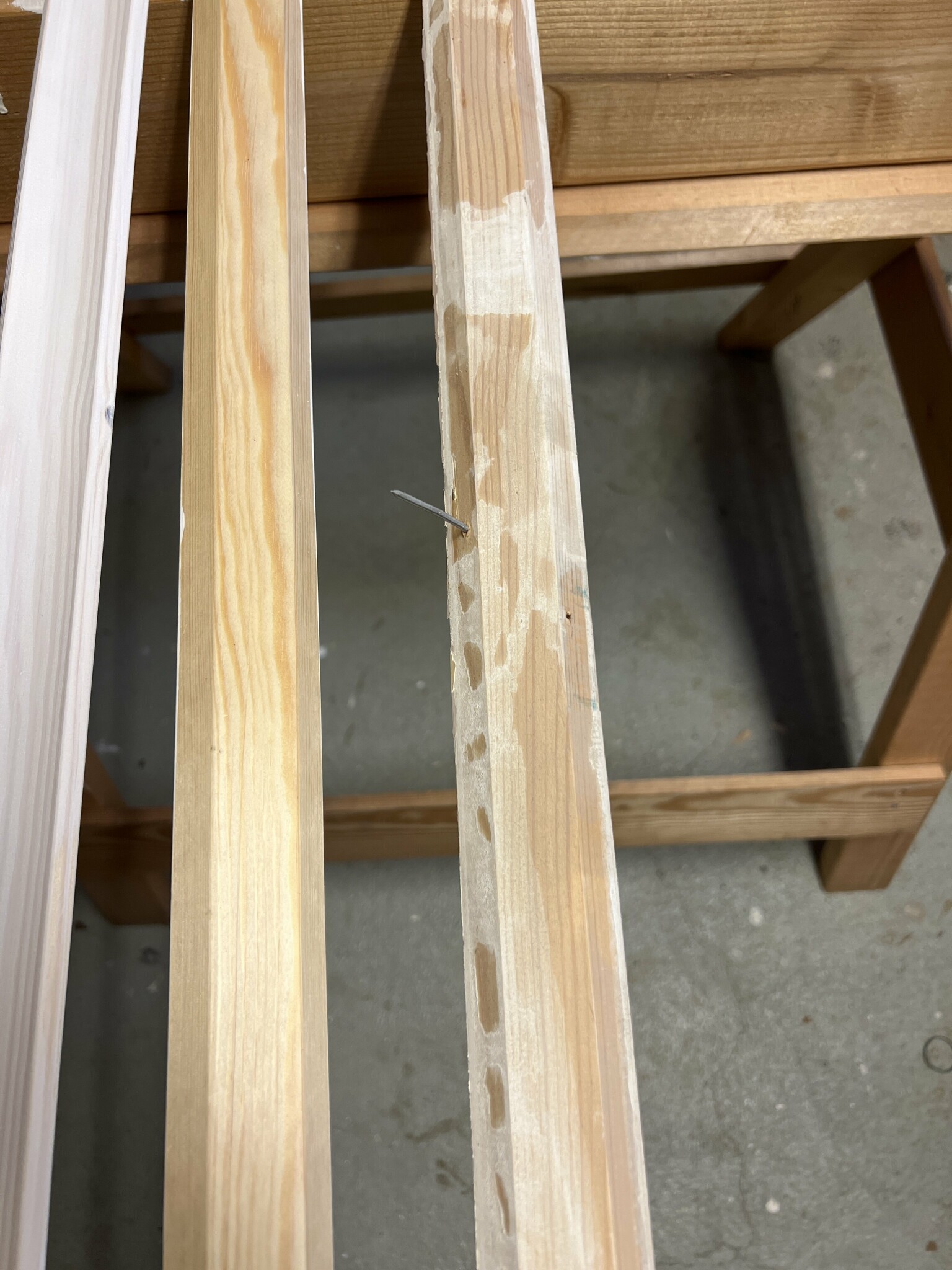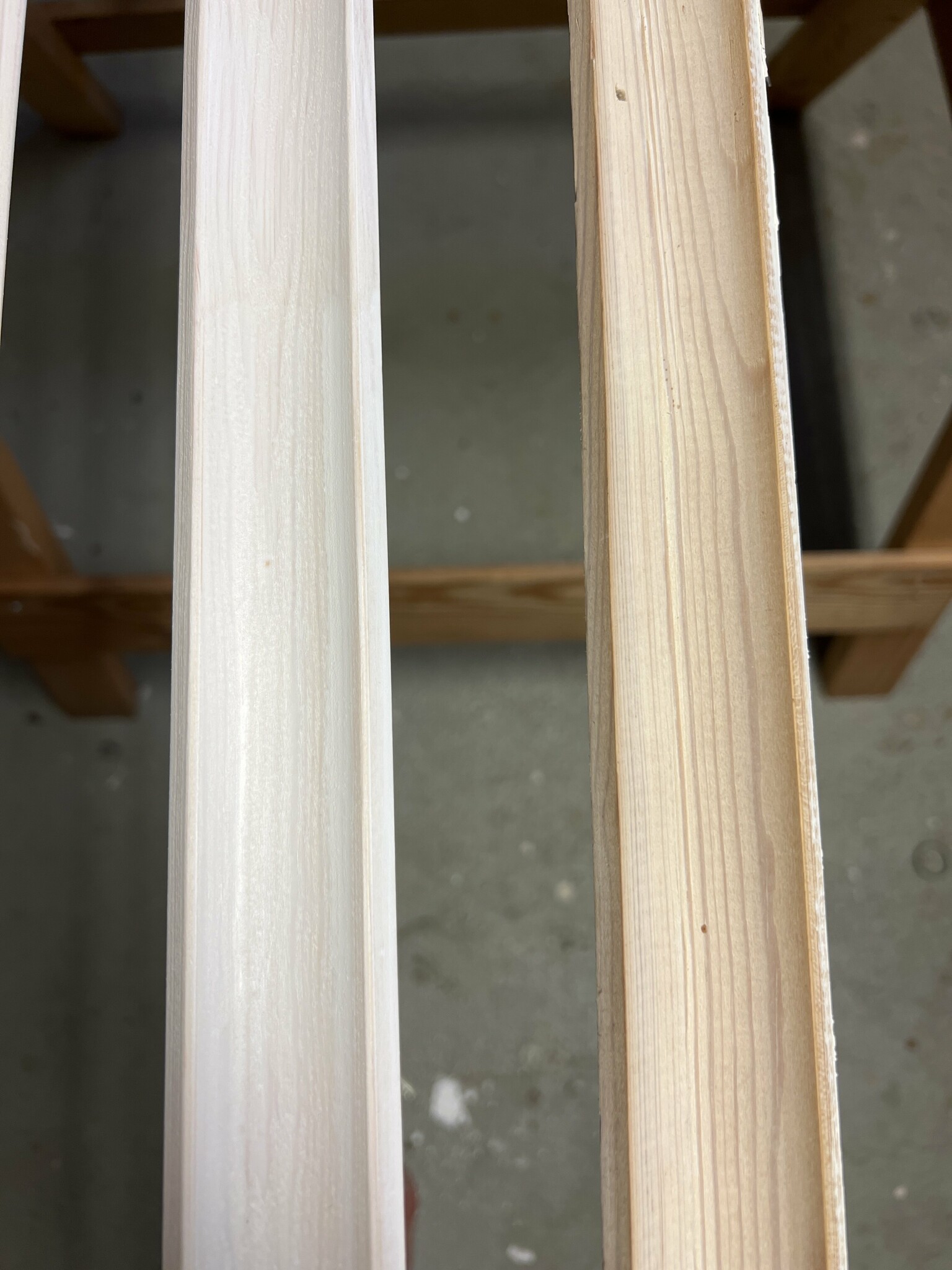 Det trodde jag också, men den nya listen är betsad med ett enda tunt lager, och ser målad ut i jämförelse. Uppenbart är det nåt annat. Eller kan det vara utspätt?
