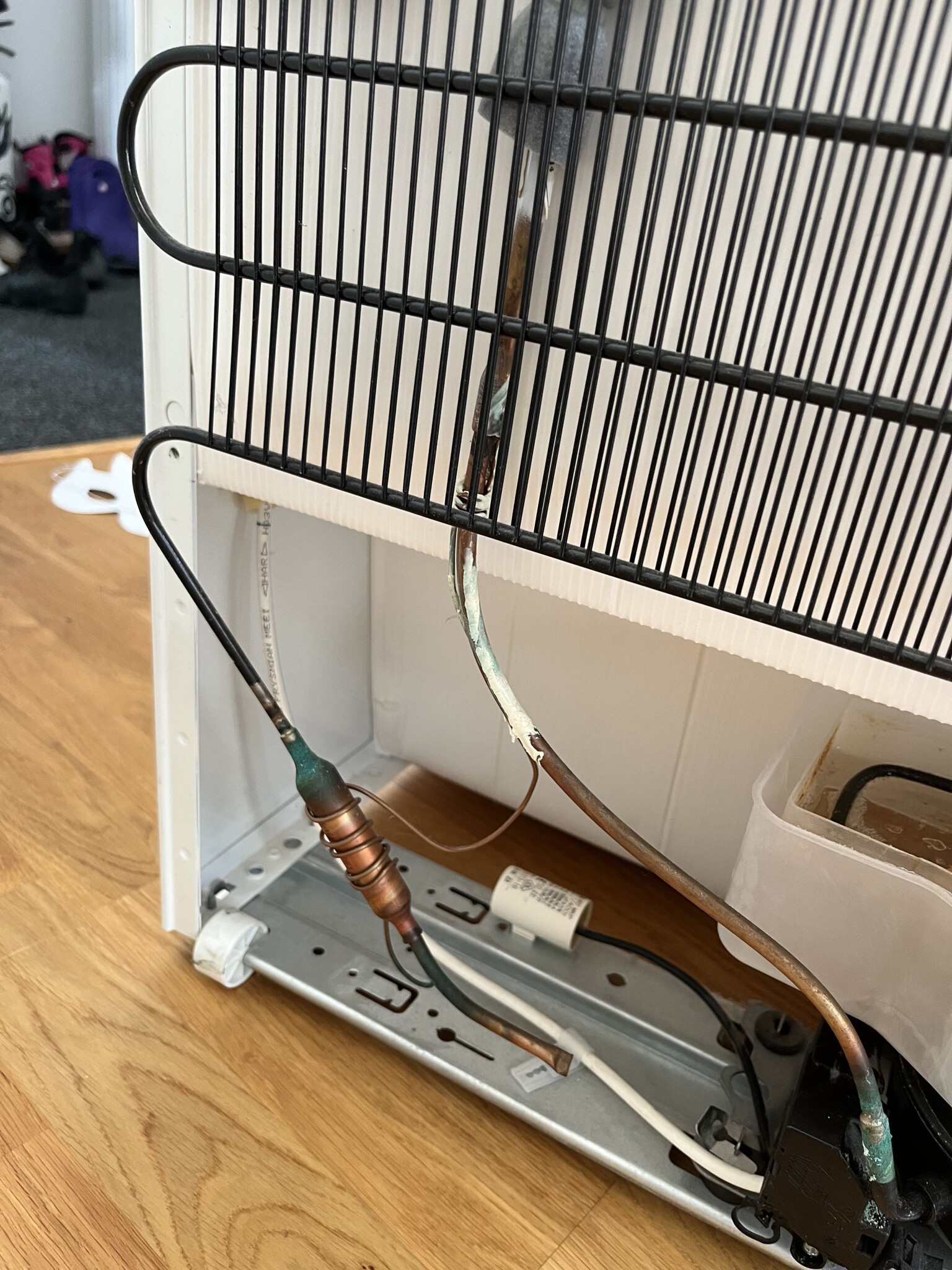 Igår drog jag ut kyl och frys för att dammsuga bakom. Då hittade jag denna gegga bakom vardera. Någon som vet vad det är till och var den ska sitta ?