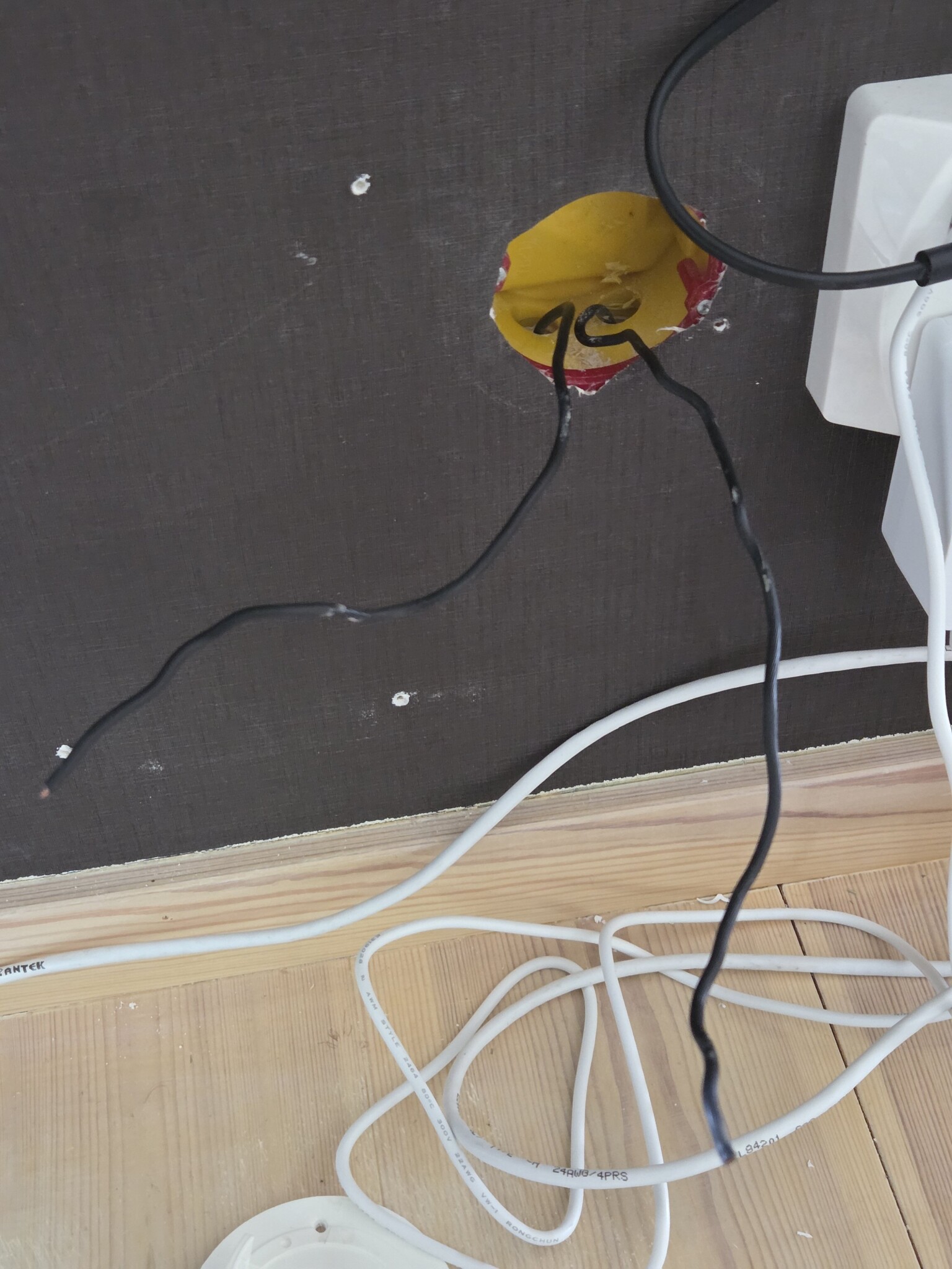 Men vad är det för två svarta kablar? Är det lågspänningskabel? Har en likadan som tittar fram nere i källaren.