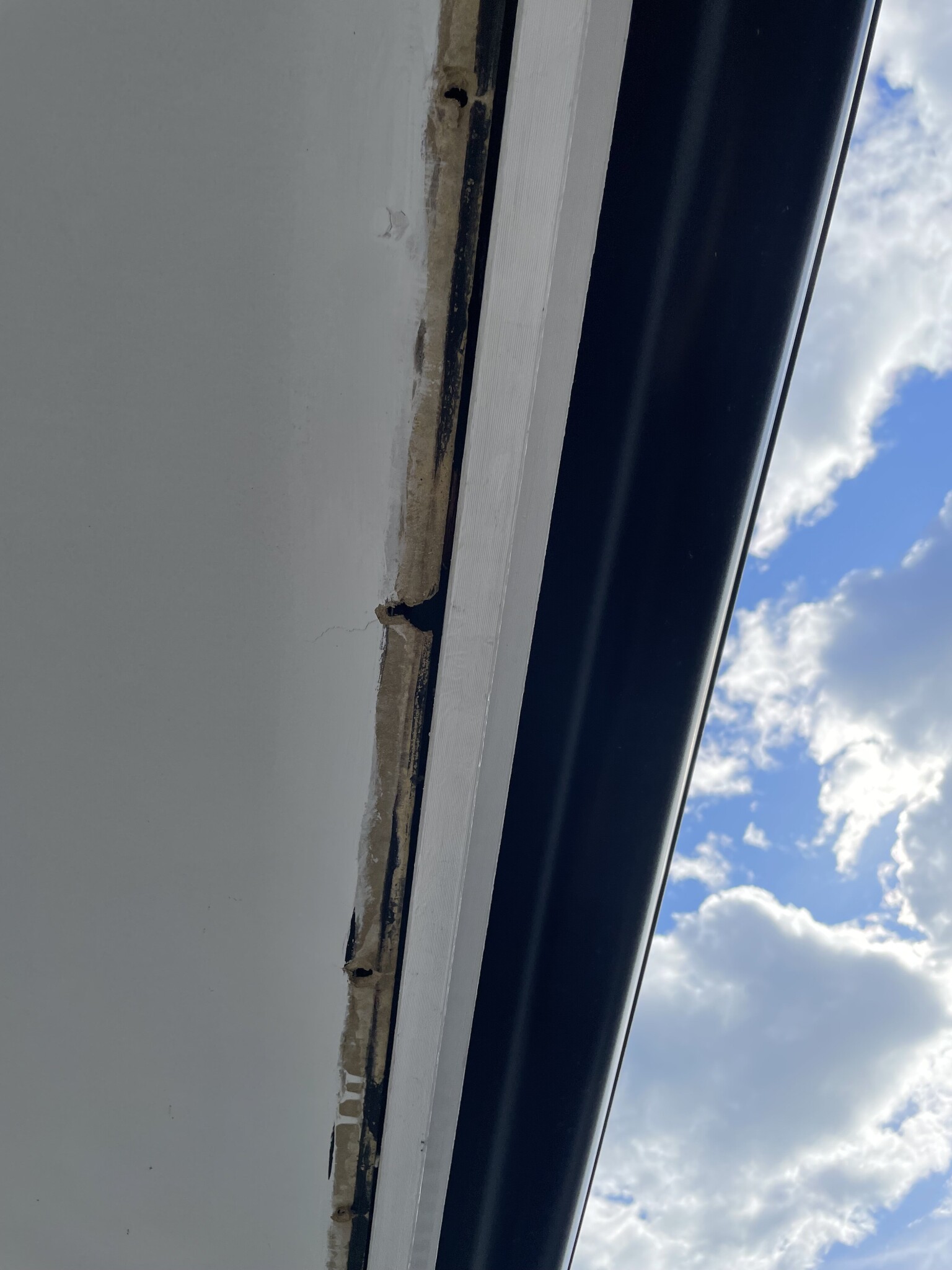 Är det någon som vet vad det är för material man använt som underlagstak??? . Tror icke det ligger duk om det hjälper… ser grått ut på bild men någon form av hård träskiva om man tittar utomhus vart färg icke återfinnes.