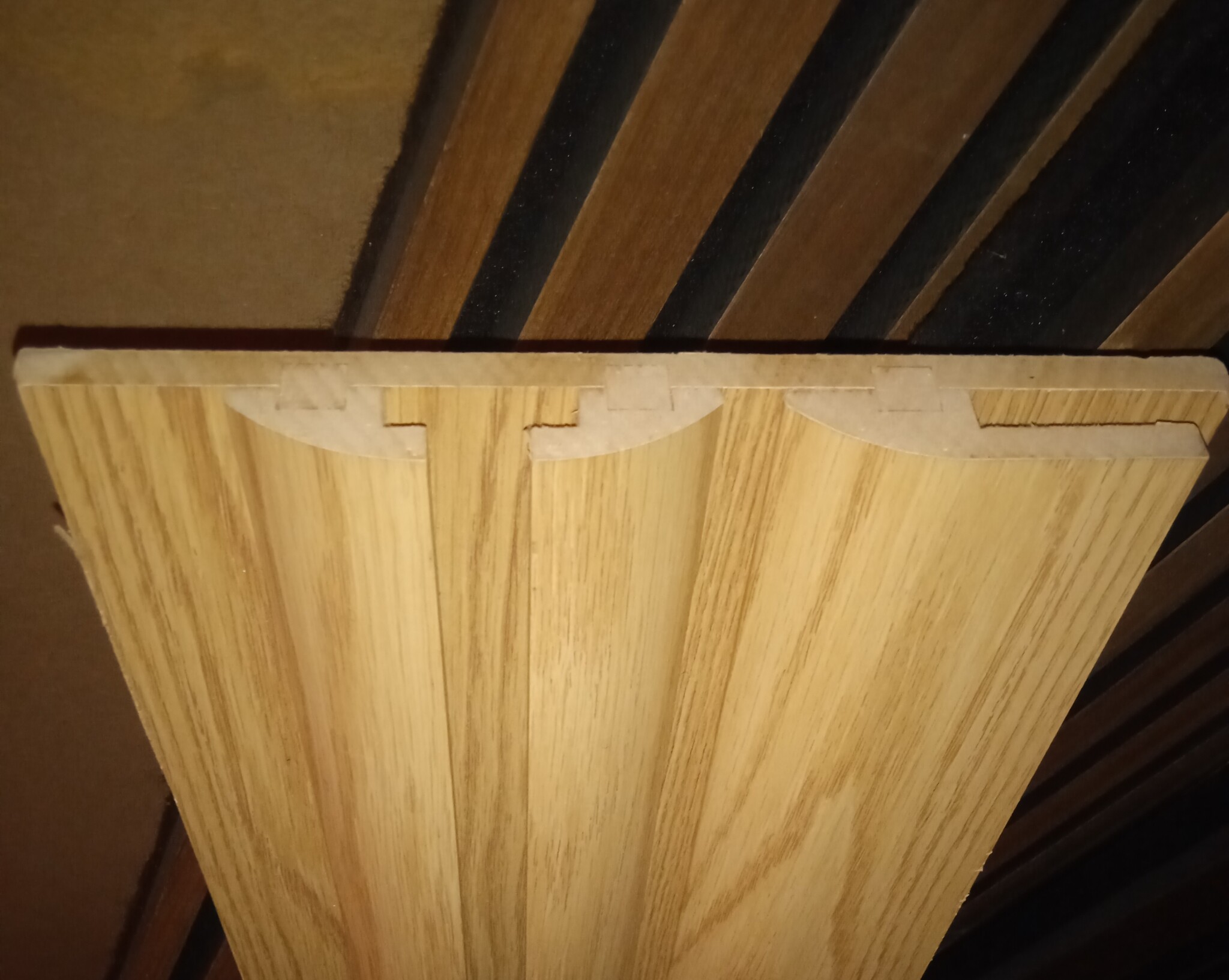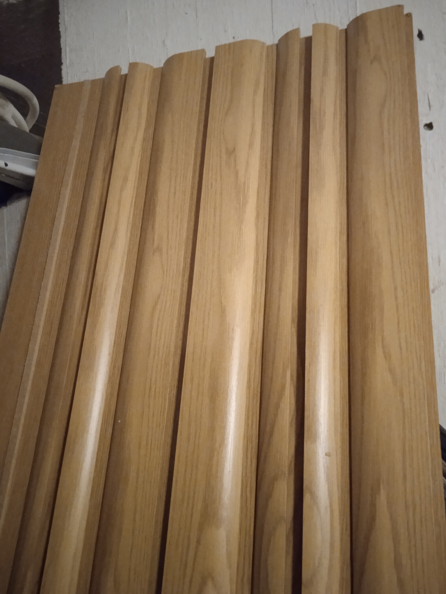 Profilen till vänster har fallit av, så den ska egentligen var symmetrisk. Jag antar att det är panel dä den är 240x50. Materialet är fanerad mdf.
