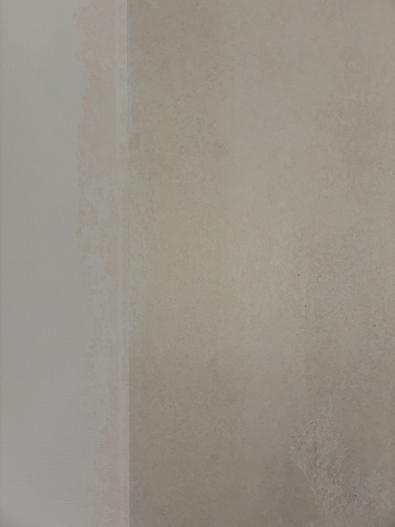 Mögel! skriker någon. FUKTSKADA raljerar en annan. - Nja säger jag? Det SER ju onekligen kanske så ut på bilderna, men det känns verkligen inte som något organiskt eller fuktigt under tapeten. Ingen konstig lukt finns heller. Min känsla är att det är något typ kemiskt som reagerat under tapeten, klistret eller något annat gammalt tyskt numera förbjudet preparat som man behandlat väggarna med.