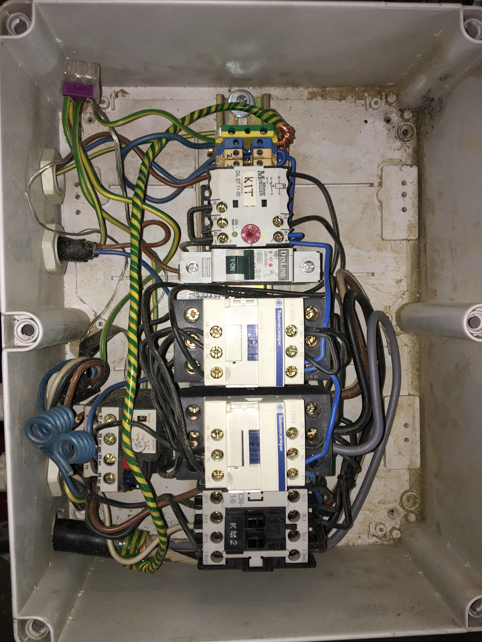 Men med den nya motorn med YD-start så följde varken mekanisk tryckvakt eller påslag med. Bara ett kopplingsskåp innehållandes lite elutrustning (ja jag vet jag är kass på el)