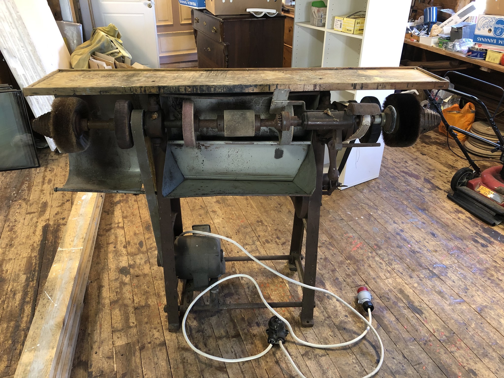 Slip&putsmaskin av ngot slag, jag har för mig jag sett något liknande i ett skomakeri.