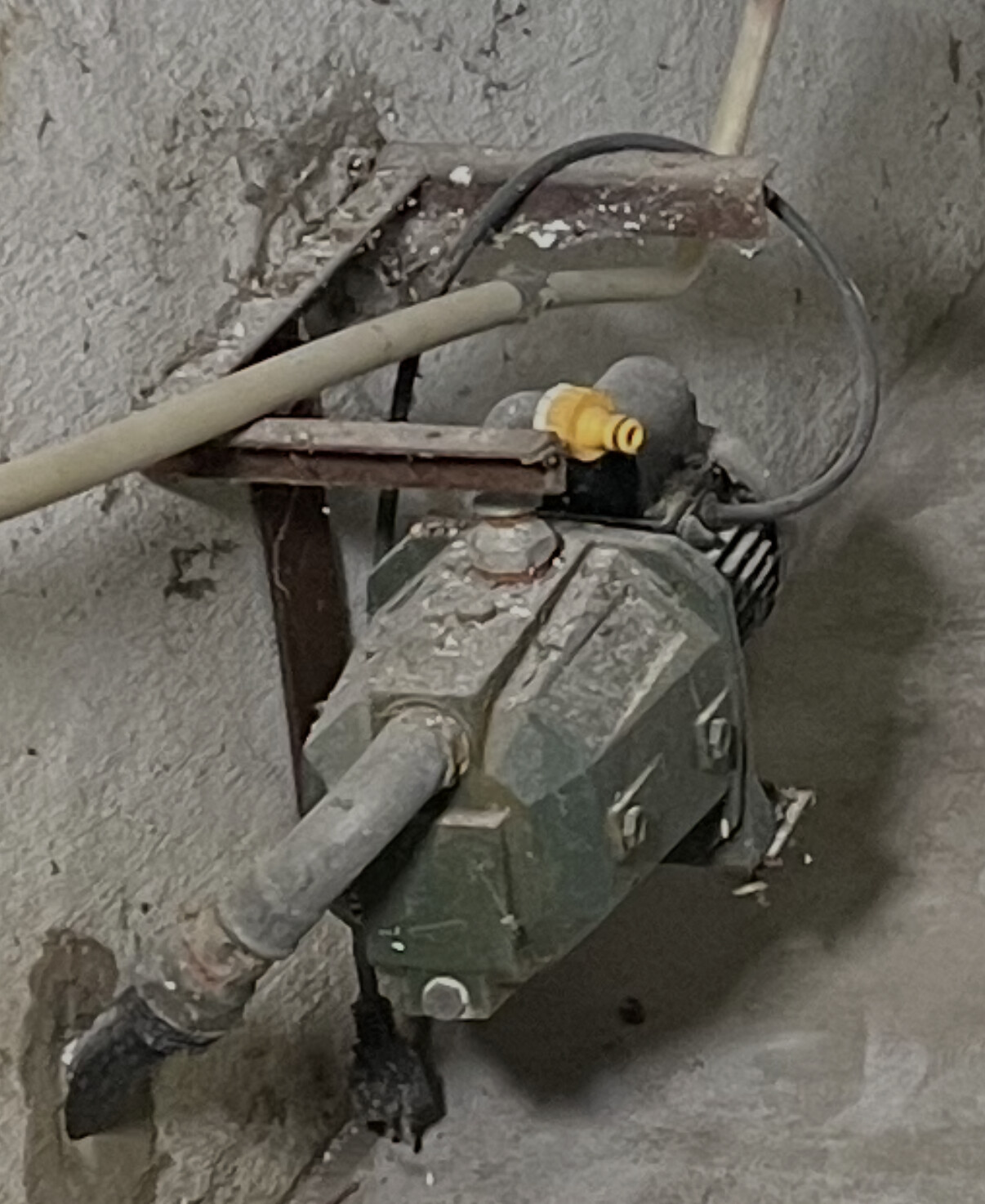 I ditt fall så verkar den ha använts för bevattning eller biltvätt eller liknande med tanke på gardena-kopplingen på trycksidan. Den svarta slangen som går ut genom väggen sitter på pumpens sugsida och går väl förmodligen ner till någon gammal grävd brunn, nergrävd vattentank eller kanske sjö, damm eller dike i närheten.