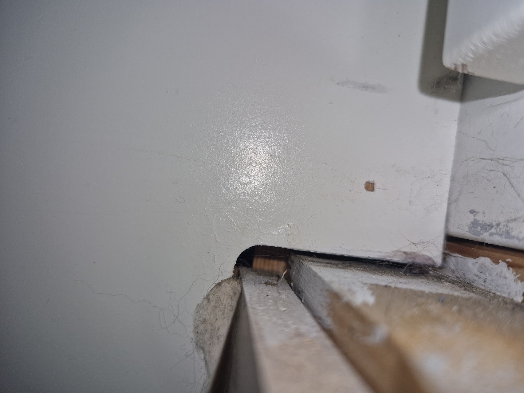 Är det någon som vet vad det här är för springor under fönsterbrädan? De sitter in i väggen, det är en träskiva(masonitskiva?) som ramar in fönstergropen från gipsväggen, och det verkar helt öppet där in till reglarna, kanske t om isoleringen? Jag funderade på om jag skulle fogda igen de, är lite fundersam om det kommer en doft från de hålen under sommaren, kanske isoleringen som blir varm och börjar lukta, om det är öppet via det här hålet?