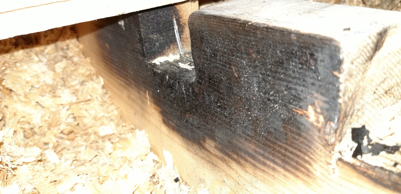 Men är det bränt så behöver jag ju inte såga bort det. Bara förstärka så jag får något att skruva plankorna i.