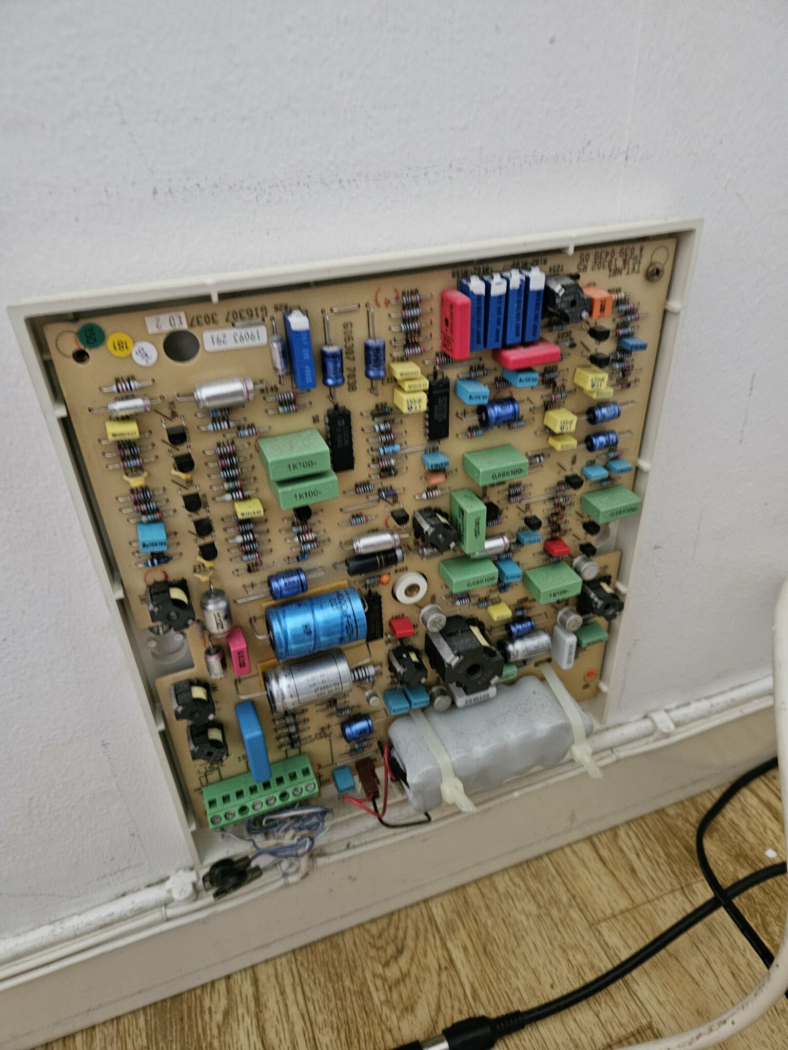 Det stora kretskortet påminner mig om en multiplexer (som Bo var inne på). Min bror hade något liknande när han bara hade standard 2 par in och behövde 4 telefonnummer. Då kom Televerket och skruvade upp något liknande.