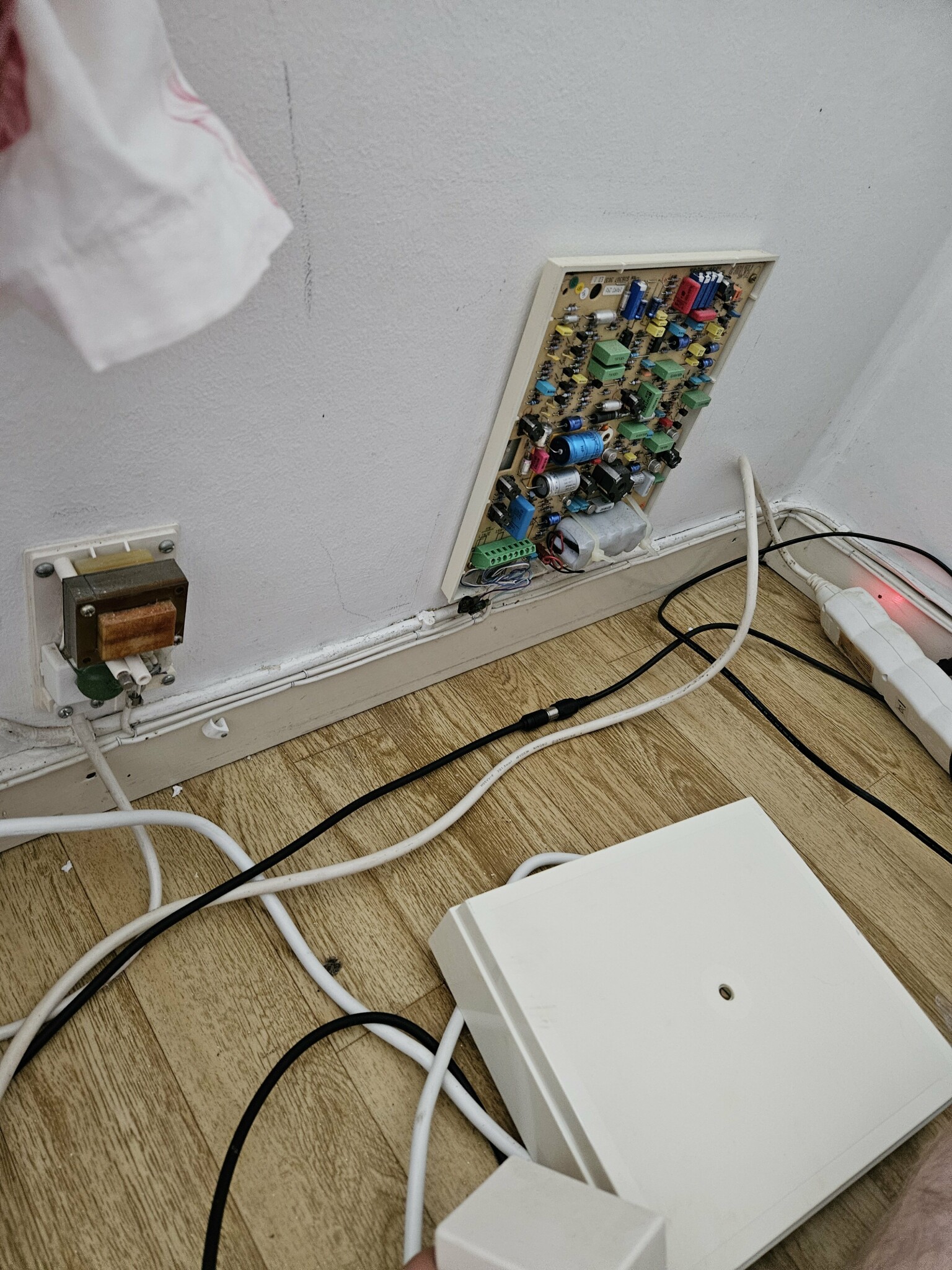 Hittar dessa i stugan. Ingen aning om de kan tas bort eller behövs. Gissar en är telefon in?