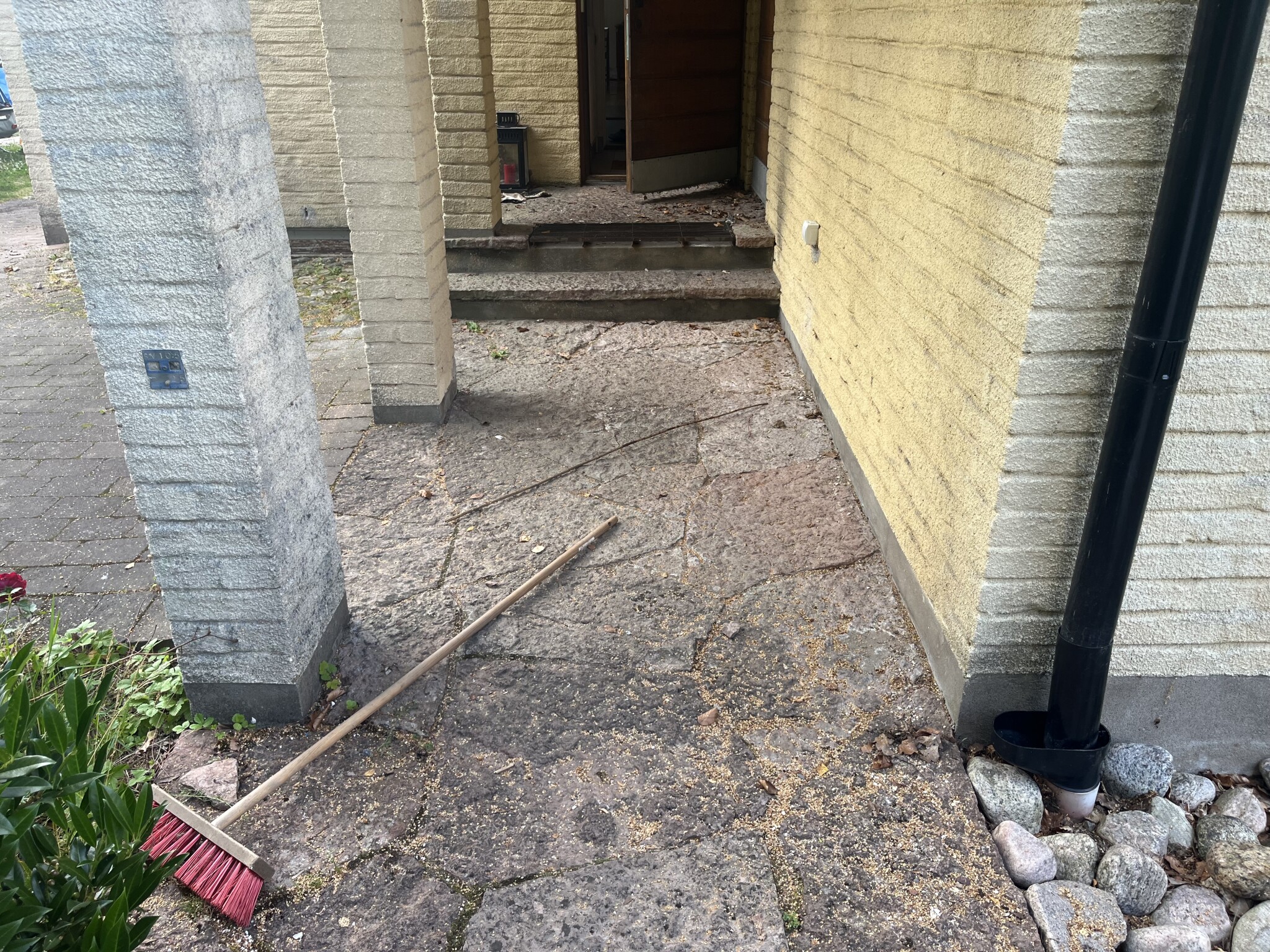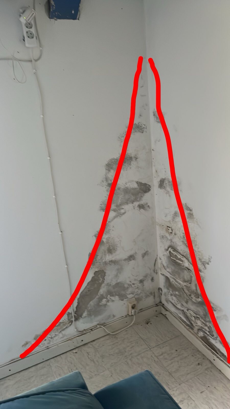 Vi har mycket fukt i ett hörn, med saltutfällningar, puts som lossnar med mera. Ni kan se på bilden.