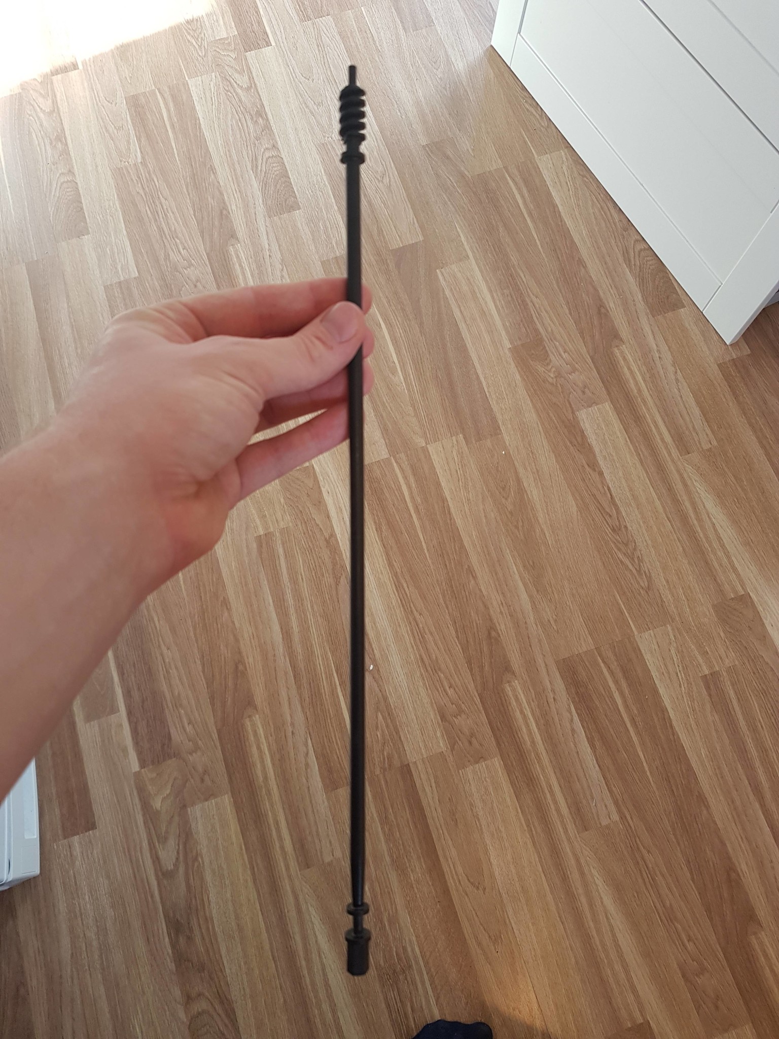 Vad det kallas vetesjutton, men mycket riktigt, den skulle stickas in i ett hål vid bakre foten på diskmaskinen vilket gjorde att foten fixerades. Det slog mig nu att man säkert kan skruva på den och justera i höjdled även nu i efterhand.