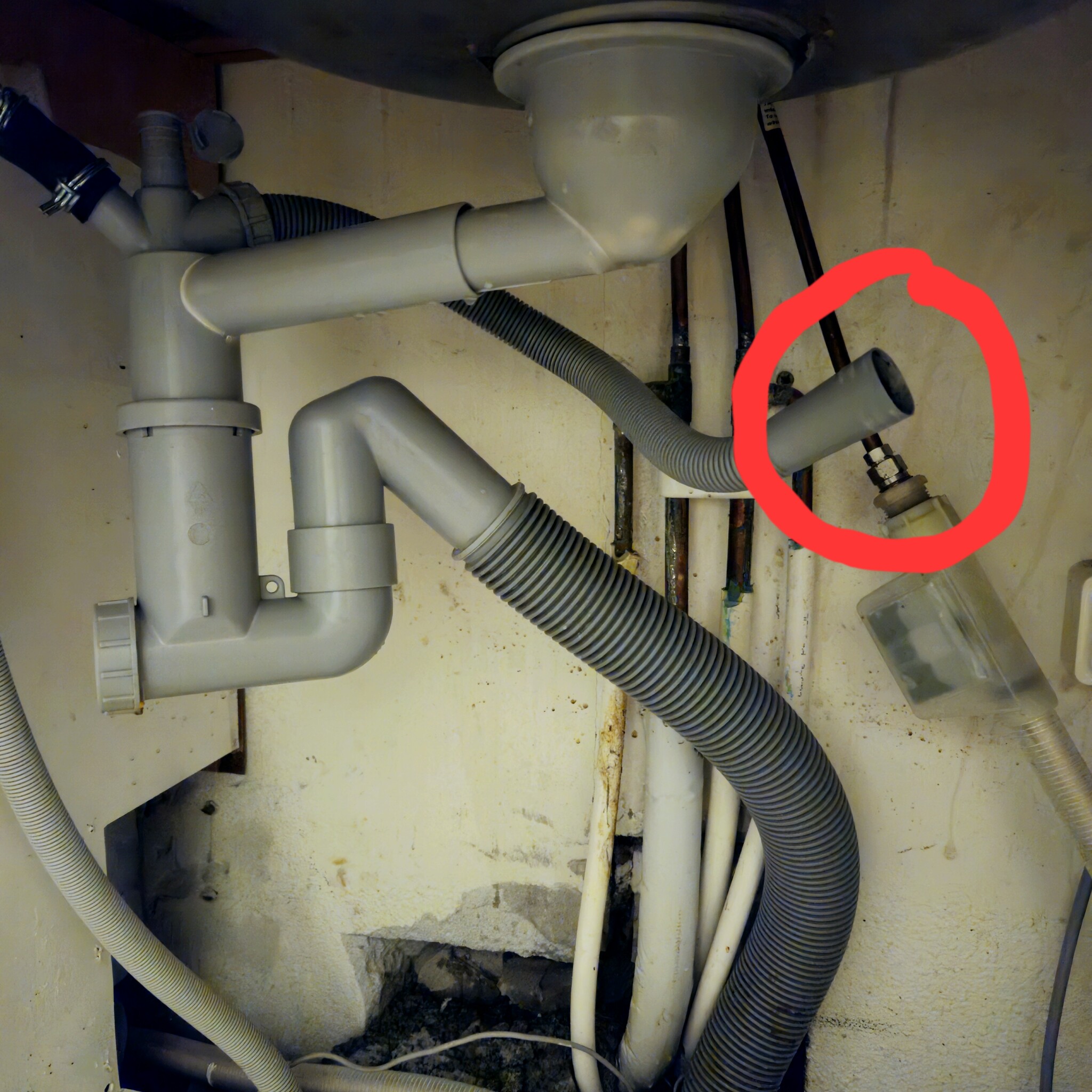 Stopp i avloppet i köket. Skruvade ut silen och rensade korgen under. Skruvade silen fast igen och testade. Nu kommer allt vatten ut från det rödmarkerade röret som jag inte ens vet vad det är för något. Är det för luftning? Och kommer vattnet ut därifrån för att det är stopp längre ner? Mycket tacksam för svar 🙏