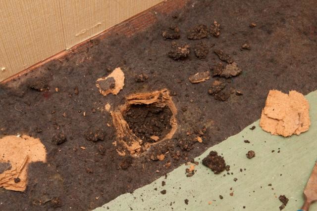 Det där är kork som är dränkt i tjära, tjära innehåller pah som är cancerframkallande. Om ni river sånt här måste ni minst ha all hud skyddad, pah sugs upp genom huden, påminner lite om pcb.