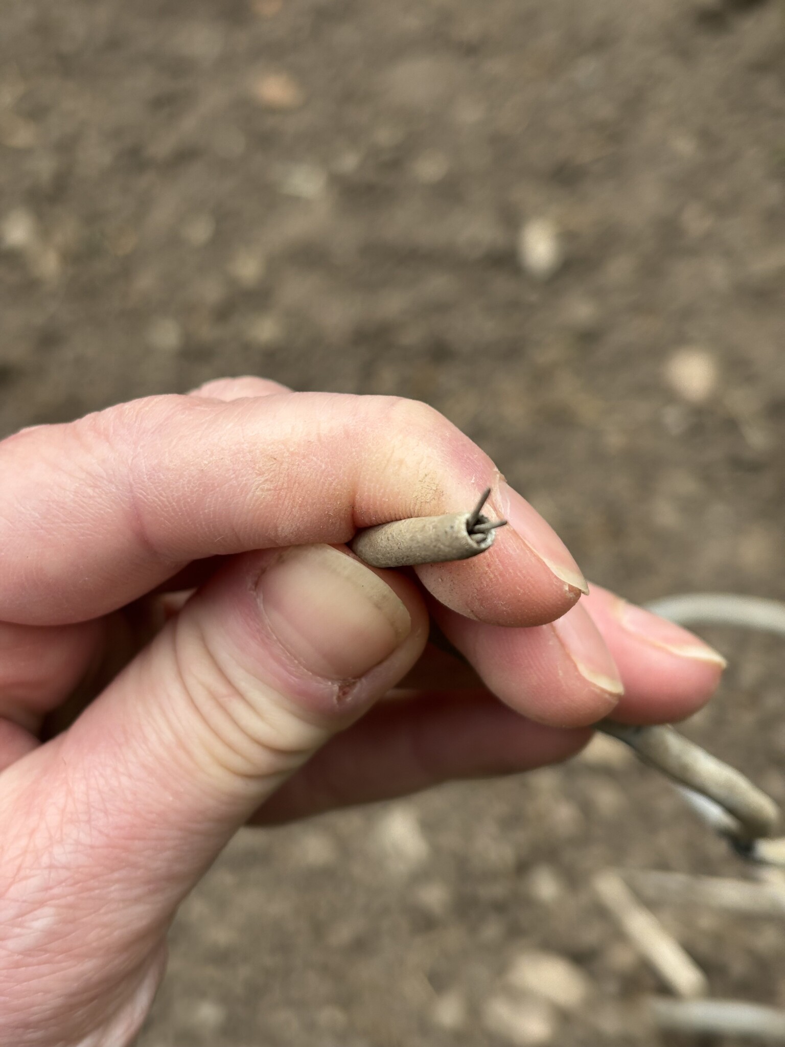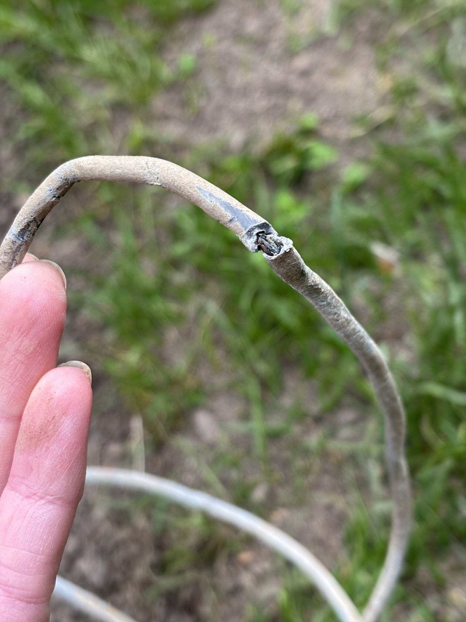 Hittade denna när jag grävde kanske 25 cm ner i gräsmattan ca 5 meter från huset. Verkar inte vara ”kopplad” till något så jag tänker att den är gammal. Vad tror ni? Kan det vara till en gammal robotgräsklippare? Ser ut att ha varit ljusblå utanpå och ser ut att vara två metalledare i. Väldigt ”styv” och stannar i den form man böjer den till.