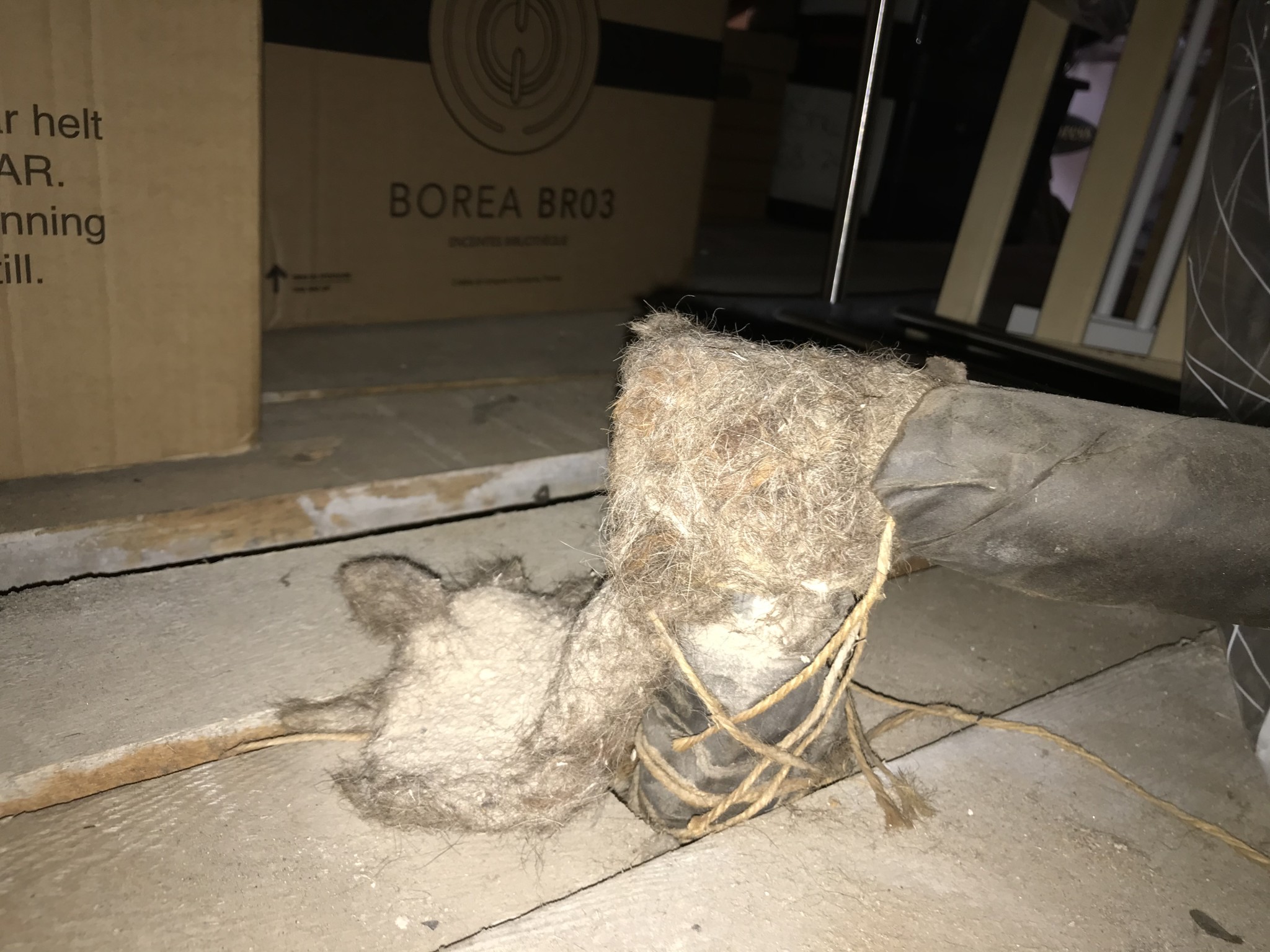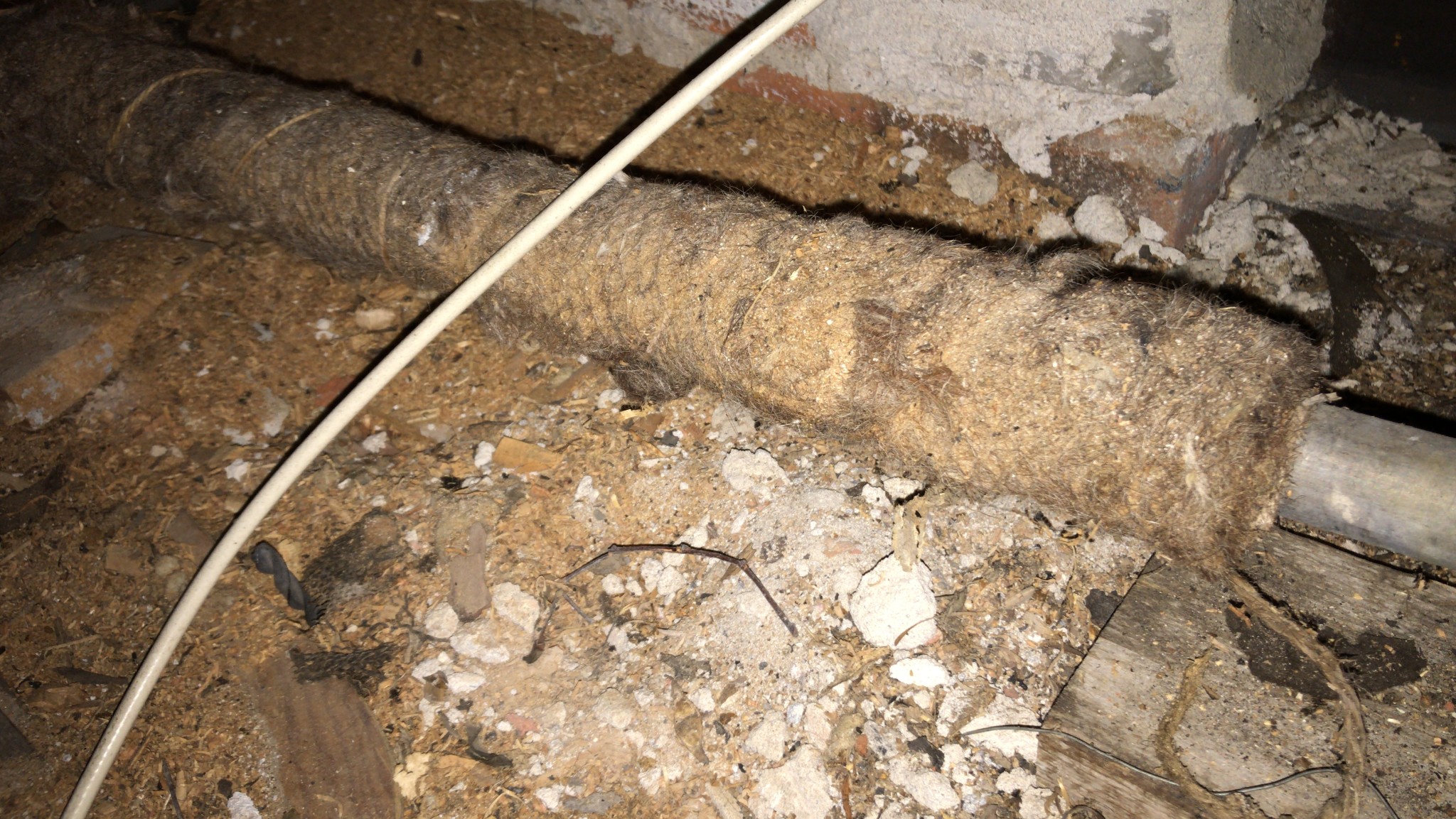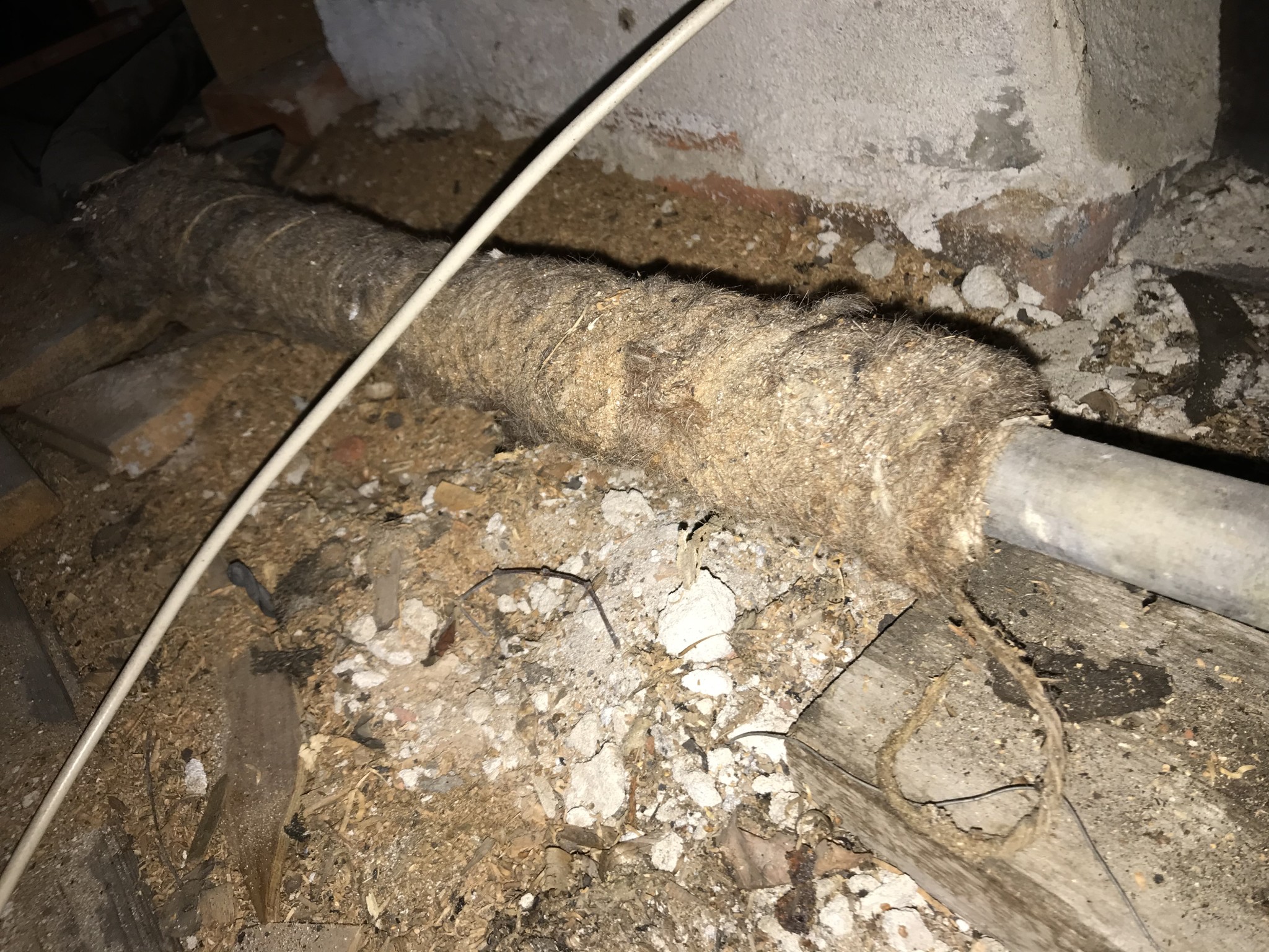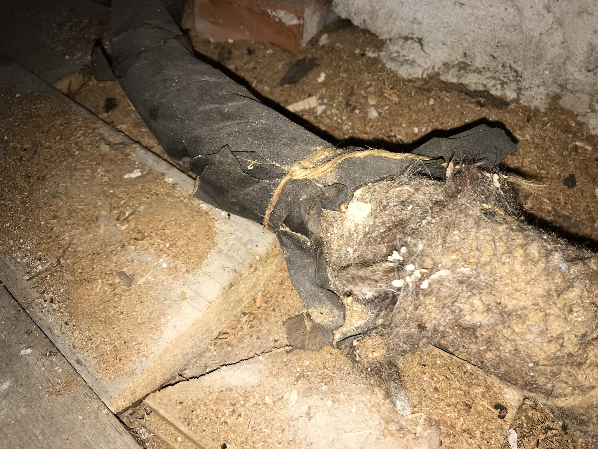 Blev osäker på vad det är för isolering runt det, ser ut som att det suttit nät runt det förut.