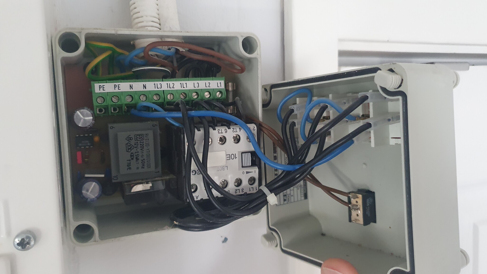 Tanken var att du ersätter timerkortet i lådan med en fjärrstyrningspuck, den kopplas sedan till kontaktorn samt till aktiveringsknappen på fronten.