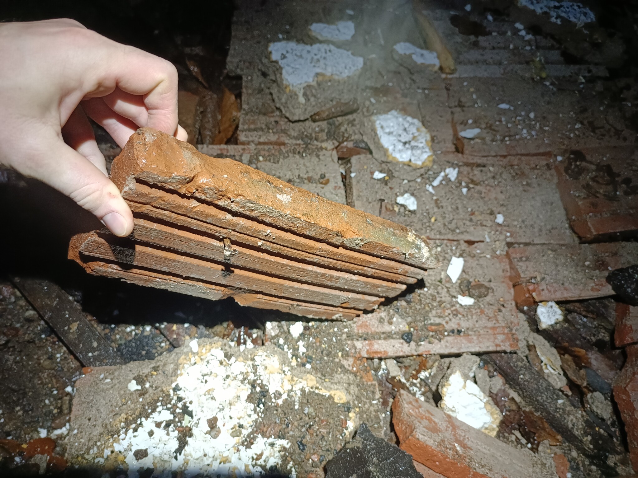 Vad är detta för typ av gammalt tegel? Tunna med spår på ena sidan.