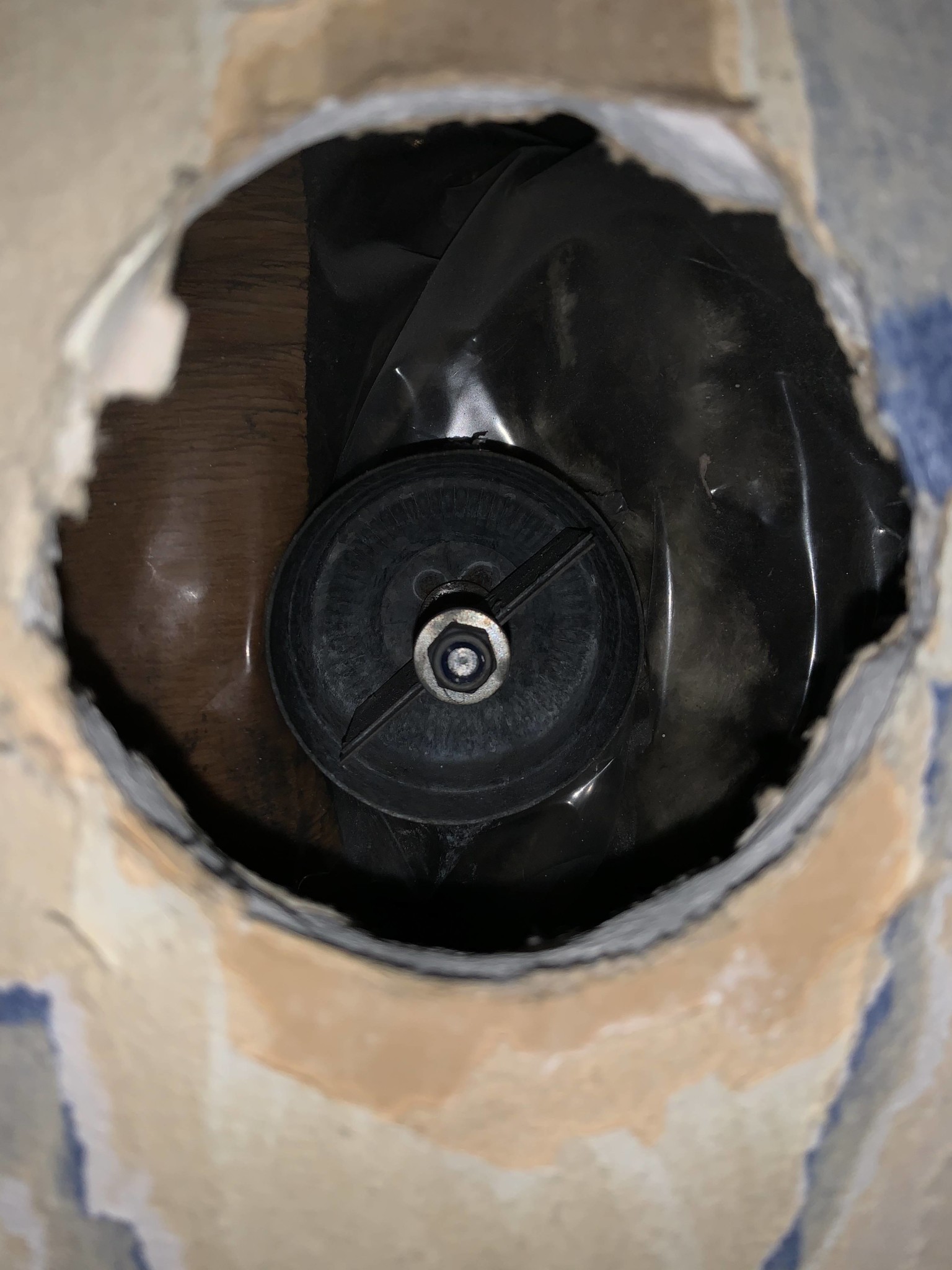 Ska tapetsera om i sovrummet och märkte att bakom tapeten var det ett hål in i väggen, och där fanns denna: