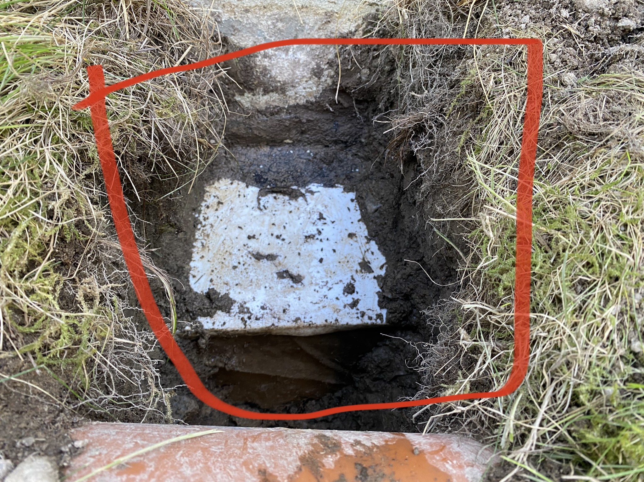 Oranga röret är vatten fr stupränna men vad är detta, någon form av dräneringsrör / matta? Jag har tänkt dra in avloppsrör mm i väggen men vet inte om jag måste gräva under detta