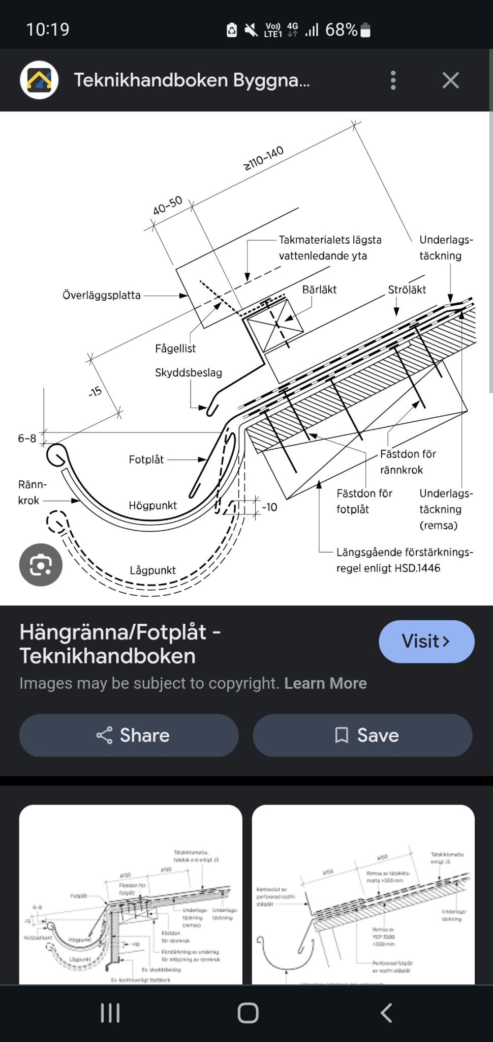 Kanske tycker man det är fult med mycket synlig övre fotplåt? Så man tar hellre kortare läpp men med konsekvensen att hängrännan kan bli påverkad av snöras.