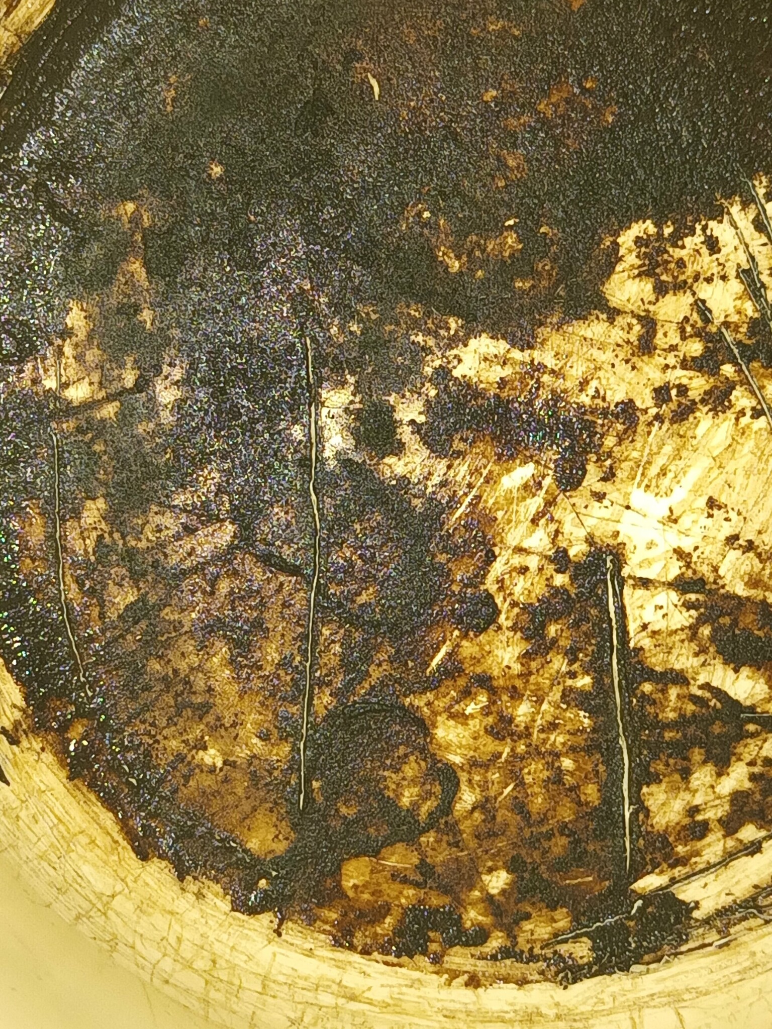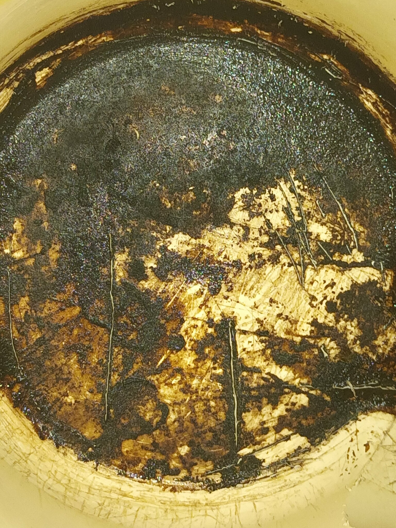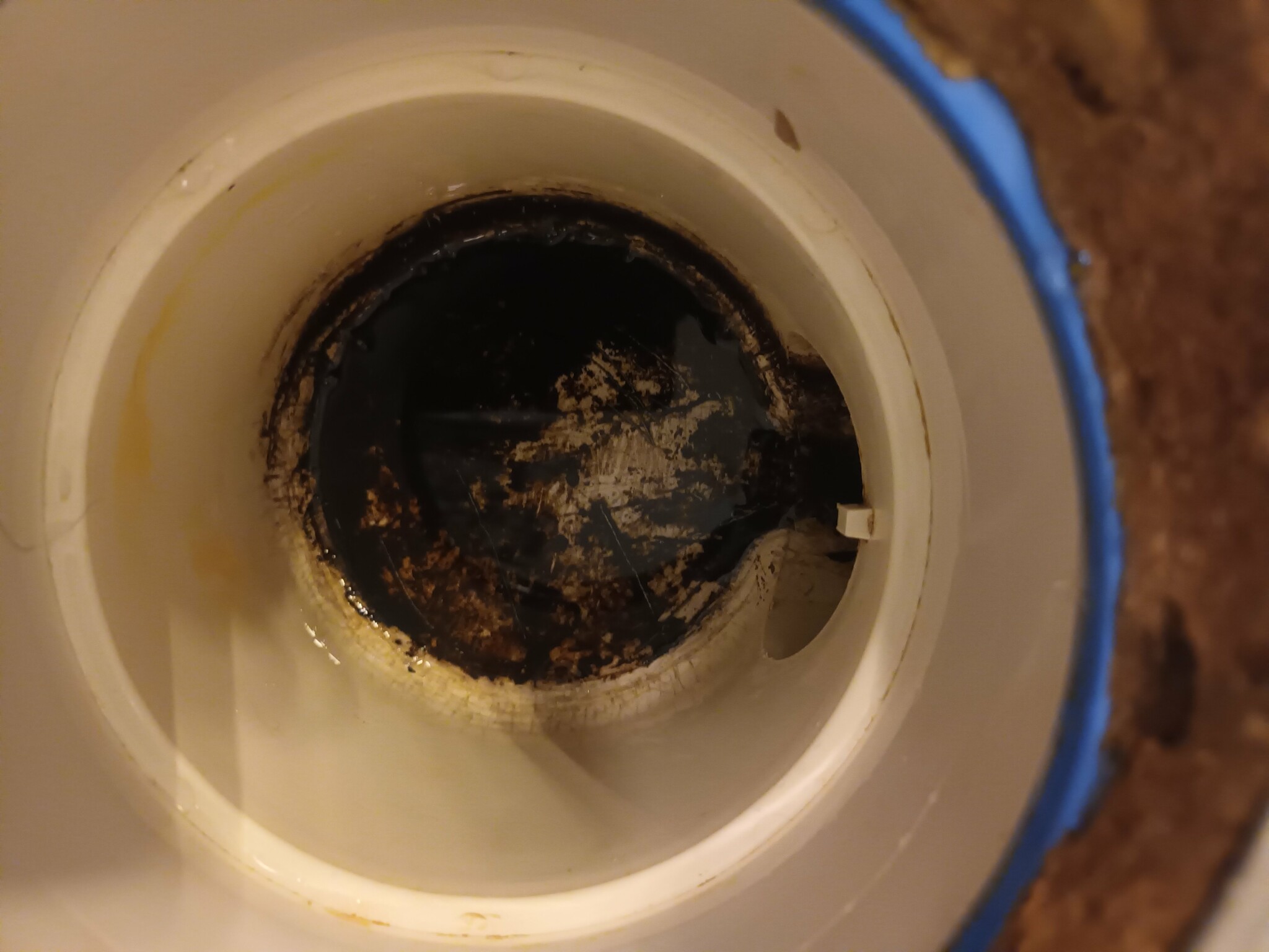 Botten av avloppet i badrummet är missfärgat enligt bilden. Det är mörkbrun beläggning. Vad är orsaken?