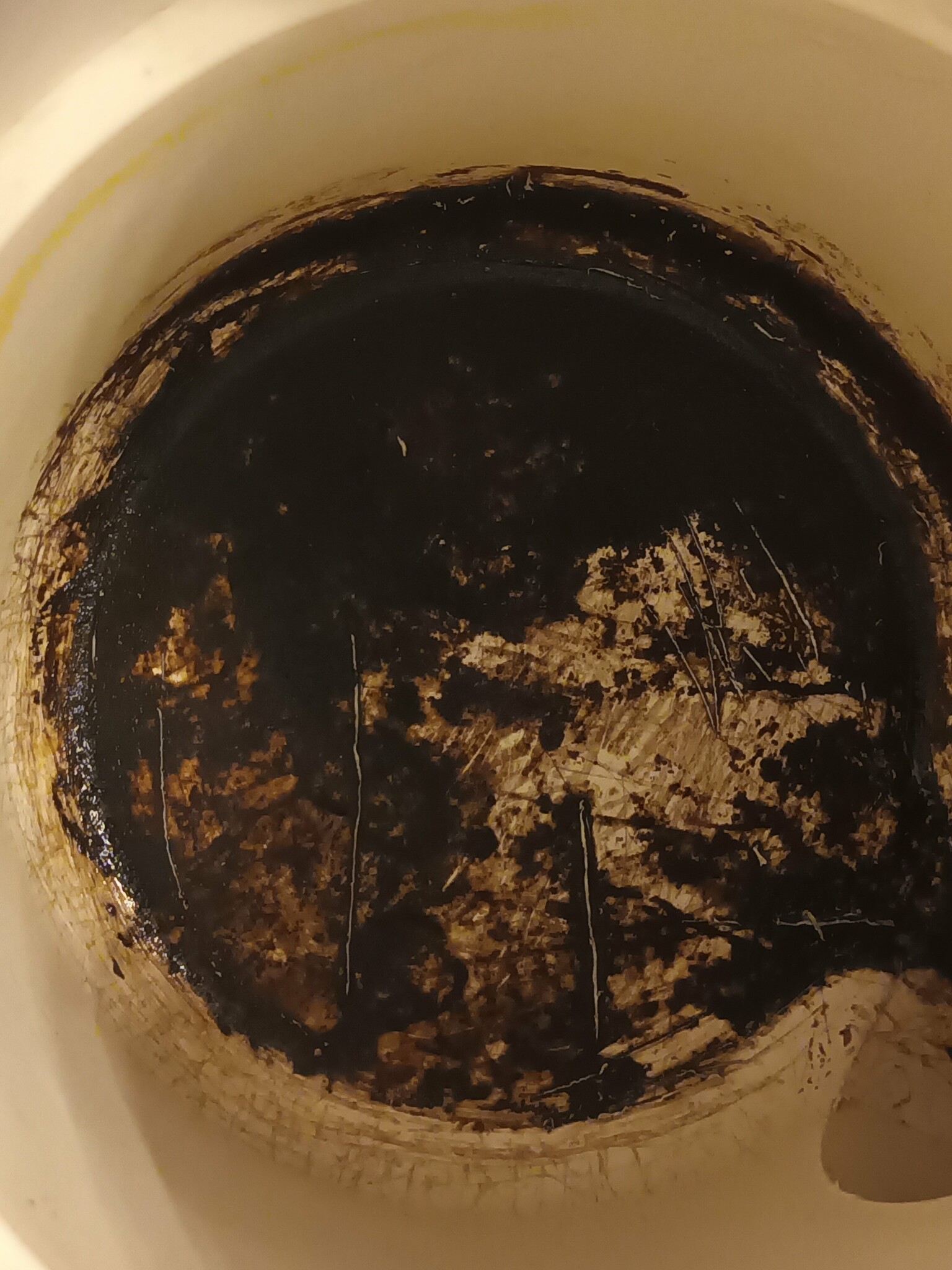 Edit: Men mörka beläggningar blir det alltid. Jag häller klorin i min, väntar en timme och borstar sedan ordentligt. Blir i princip vitt och rent igen.