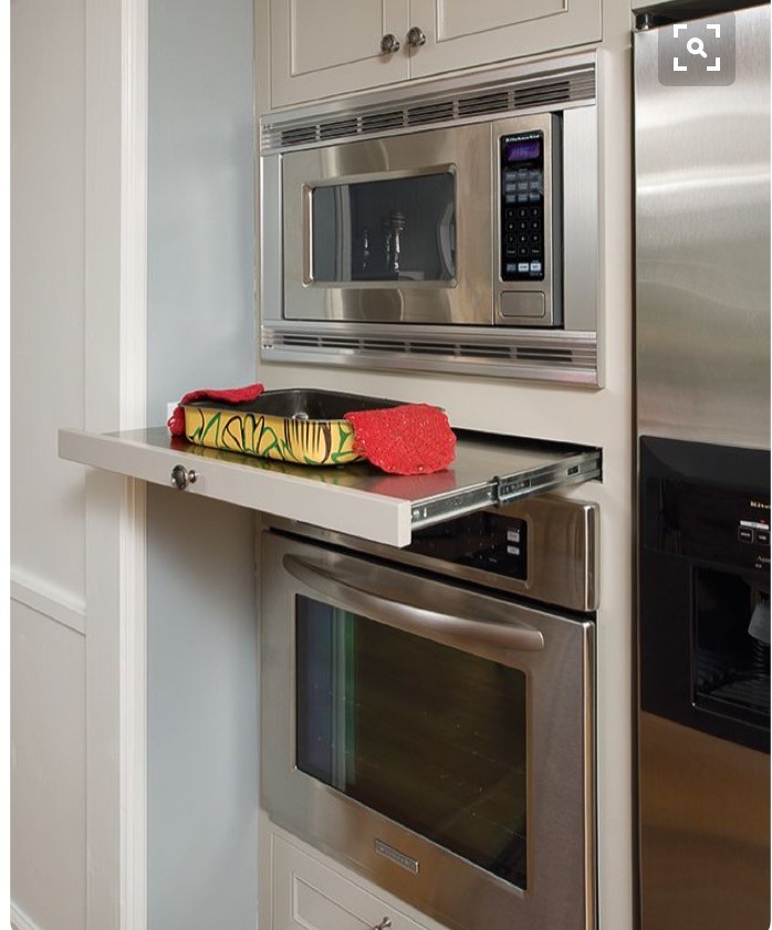 Fult med passbit mellan ugnarna, och dessutom försämras funktionen markant av att höja en redan i förvägen högt placerad ugn. Jag röstar för det första alternativet. Men byt ut mikron mot en ångugn, betydligt mer användbart än en mikro. Har du övervägt kyl och frys med täckfronter? Det hade jag själv kört på.