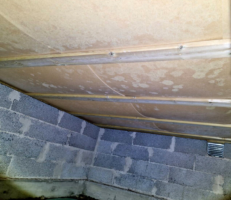 Det finns ingen lukt i huset men nu har det visat sig att det finns en ljus beläggning på undersidan av trossbottenskivorna som är av masonit. Behöver man genast vidta någon åtgärd mot detta och i så fall vad rekommenderar ni?